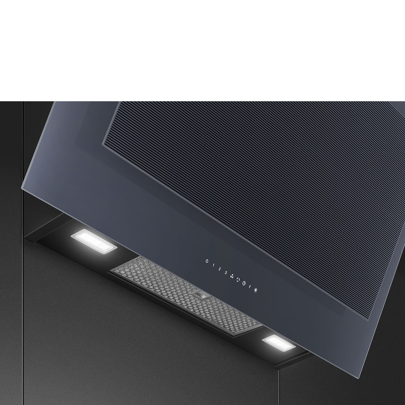 Okap przyścienny Smeg z serii Linea w nowym wykończeniu Neptune Grey, sterowanie dotykowe, oświetlenie LED, z 5-letnią gwarancją producenta, 90 cm.