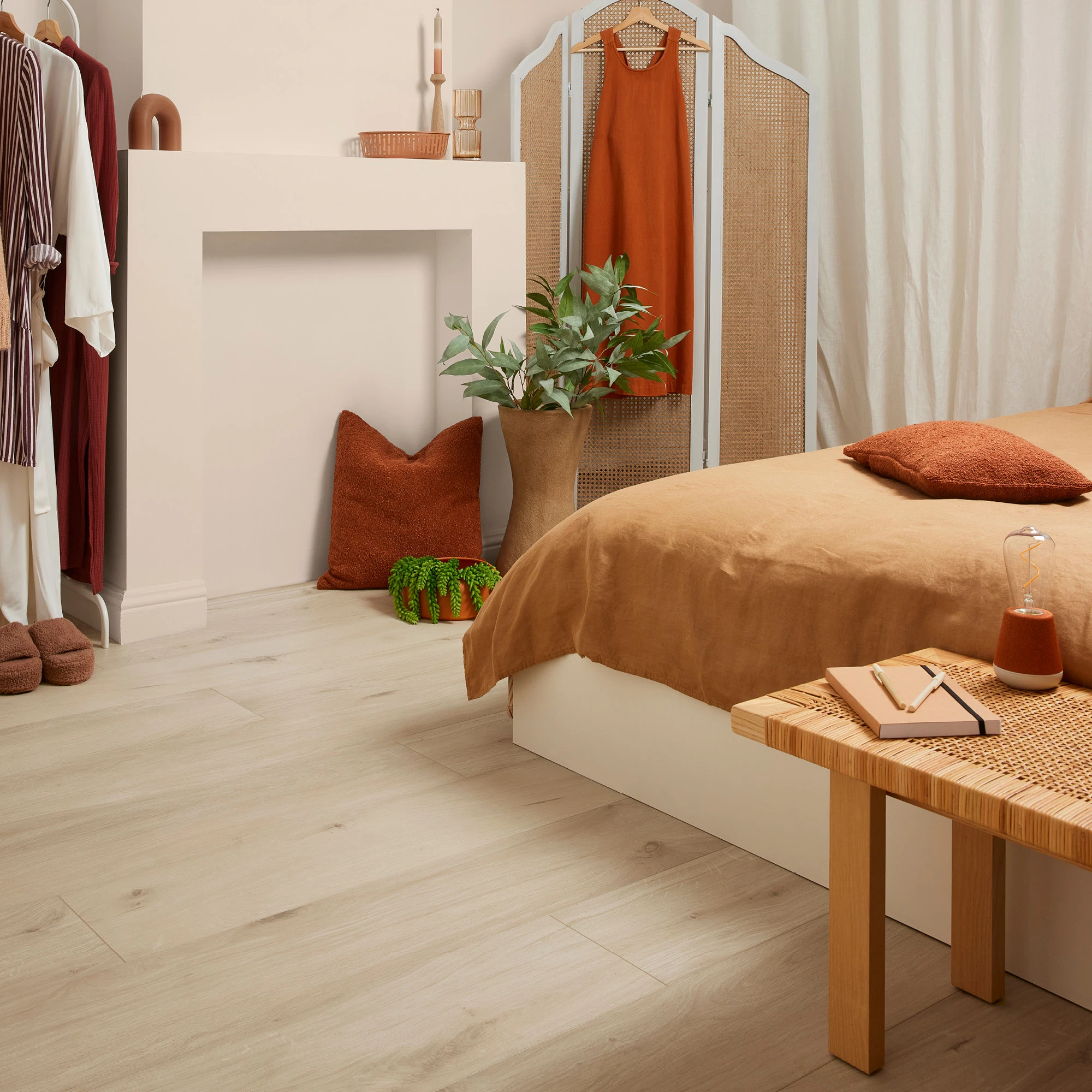 Ocean 12 XL Gyant Light Sand to wyrazisty dąb z dużą ilością sęków, ultramatowym wykończeniem i wyrafinowaną strukturą w jasnym odcieniu drewna.