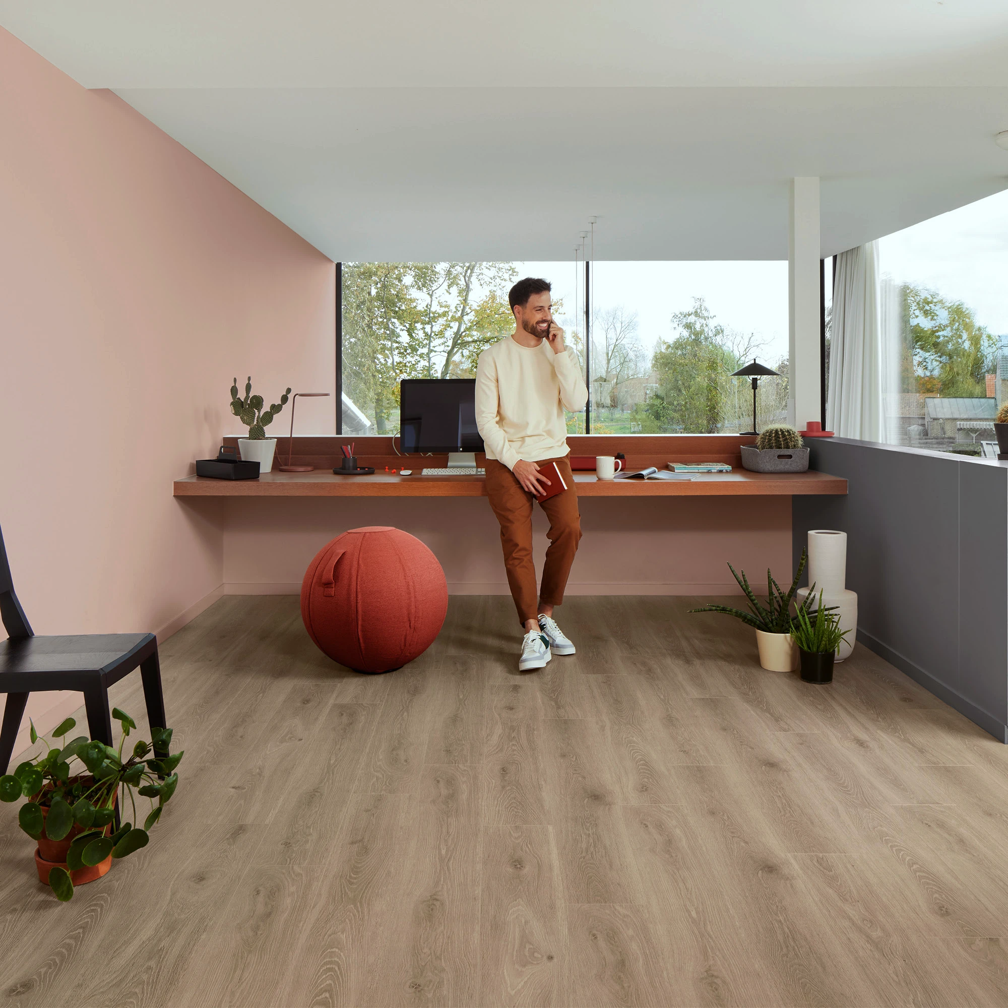 Wypadek? Nie ma powodu do zmartwień. Powierzchnia laminowanych paneli BerryAlloc nie wchłania żadnych płynów, dzięki czemu są w pełni odporne na zachlapania. W połączeniu z hydrofobową powłoką hydro+, która dodatkowo chroni krawędzie paneli, kompaktowym systemem zamków i specjalistycznymi akcesoriami hydro+ stosowanymi po obwodzie pomieszczenia, zyskujesz w 100% wodoodporną podłogę, która zniesie wszelkie zachlapania. Właśnie tak! Możesz wybrać poziom wodoodporności, co sprawia, że podłoga idealnie dopasuje się do każdego pomieszczenia.