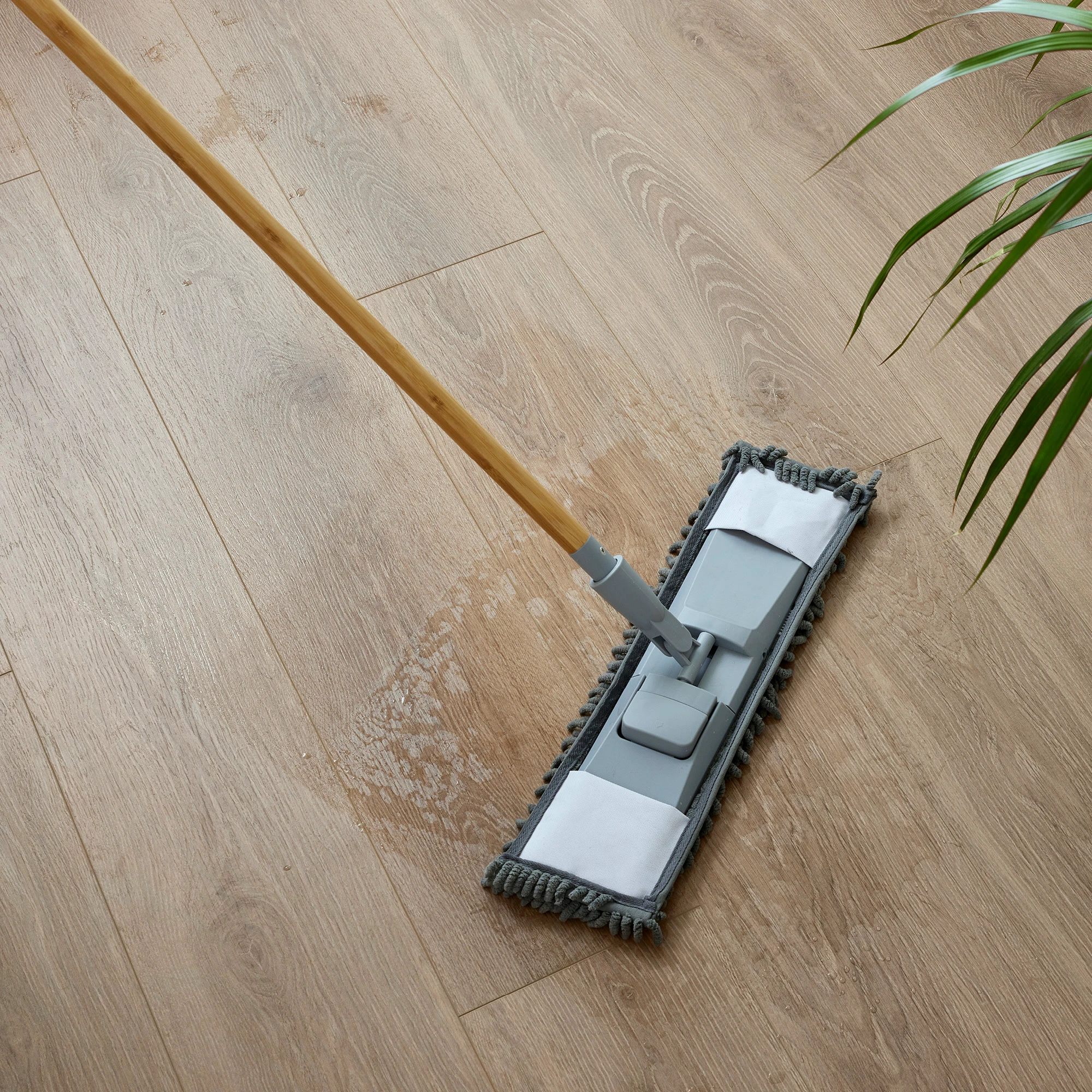Coś się rozlało? Wszystko można z łatwością zetrzeć i zostawić lśniącą czystością powierzchnię. Do regularnego sprzątania używaj miękkiej miotły, odkurzacza lub mopa z mikrofibry oraz biodegradowalnego środka do czyszczenia podłóg laminowanych BerryAlloc.