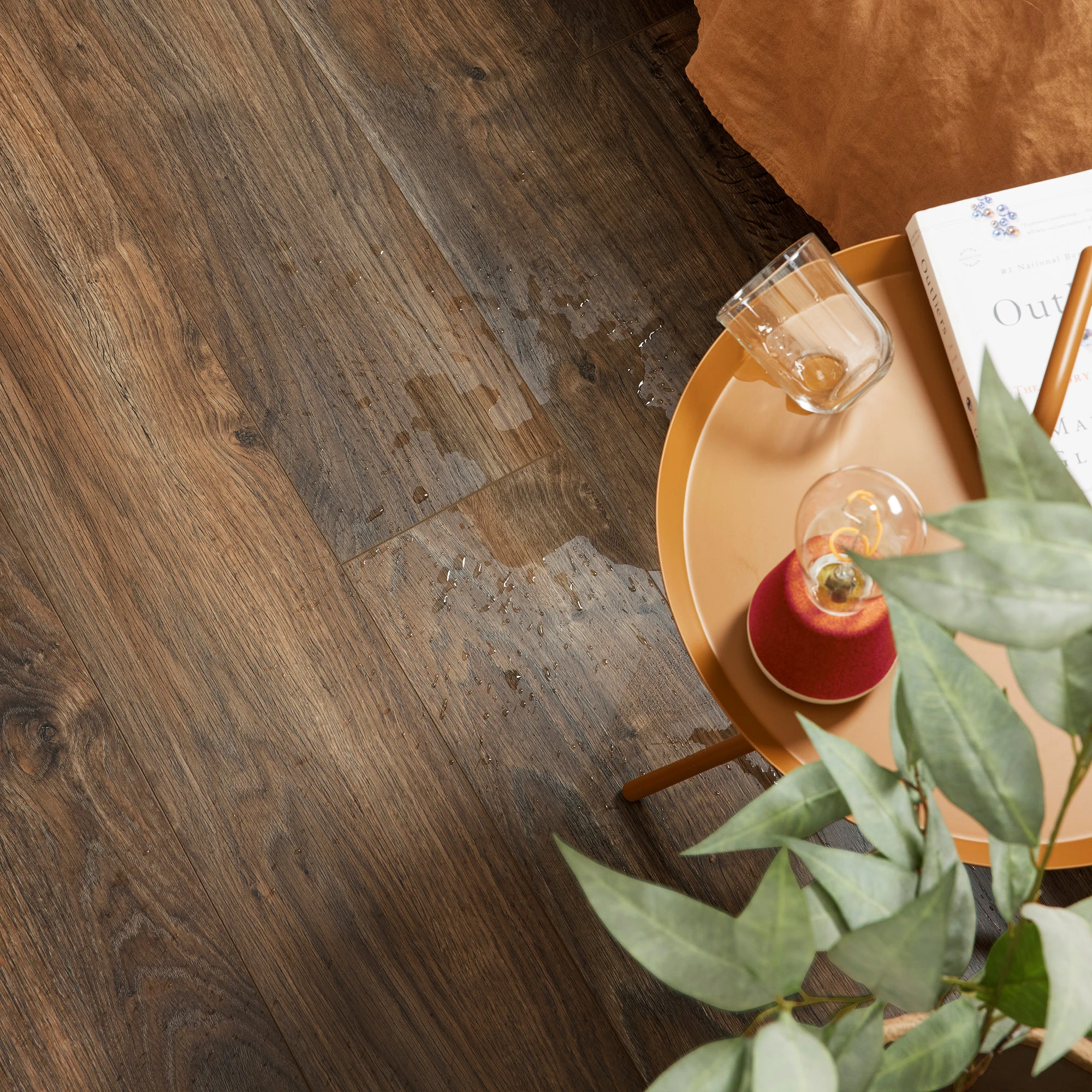 Wypadek? Nie ma powodu do zmartwień. Powierzchnia laminowanych paneli BerryAlloc nie wchłania żadnych płynów, dzięki czemu są w pełni odporne na zachlapania. W połączeniu z hydrofobową powłoką hydro+, która dodatkowo chroni krawędzie paneli, kompaktowym systemem zamków i specjalistycznymi akcesoriami hydro+ stosowanymi po obwodzie pomieszczenia, zyskujesz w 100% wodoodporną podłogę, która zniesie wszelkie zachlapania. Właśnie tak! Możesz wybrać poziom wodoodporności, co sprawia, że podłoga idealnie dopasuje się do każdego pomieszczenia.