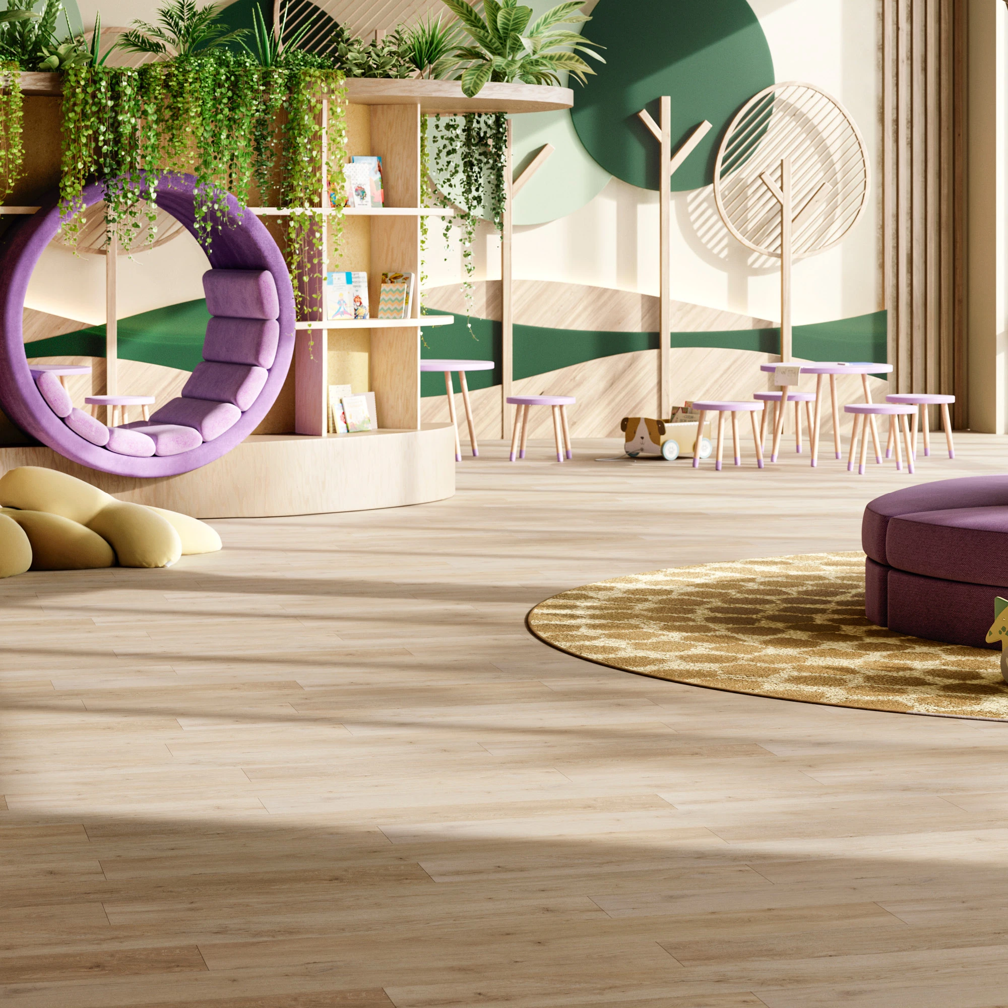 Nasze panele i płytki winylowe posiadają komfortową, miękką warstwę wierzchnią, zaprojektowaną tak, aby pochłaniała i redukowała hałas. Dzięki temu twoje kroki – jak i innych osób w tym samym pomieszczeniu lub piętro wyżej – będą brzmiały ciszej. Szukasz jeszcze większej ciszy? Nasze sztywne panele i płytki klikane to idealne rozwiązanie! Zintegrowany podkład redukuje odgłosy kroków i hałas otoczenia, zmniejszając przenoszony dźwięk o 19 lub 20 decybeli.