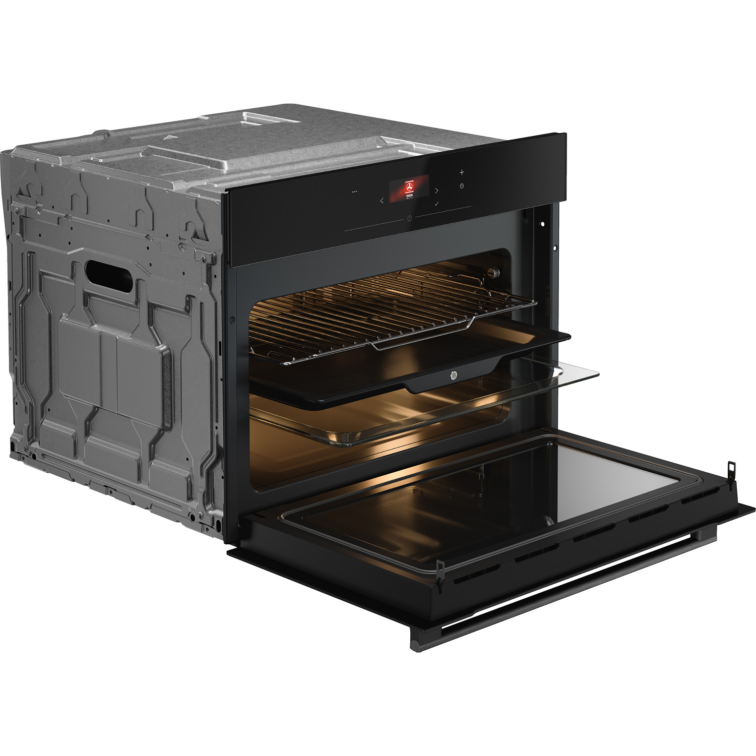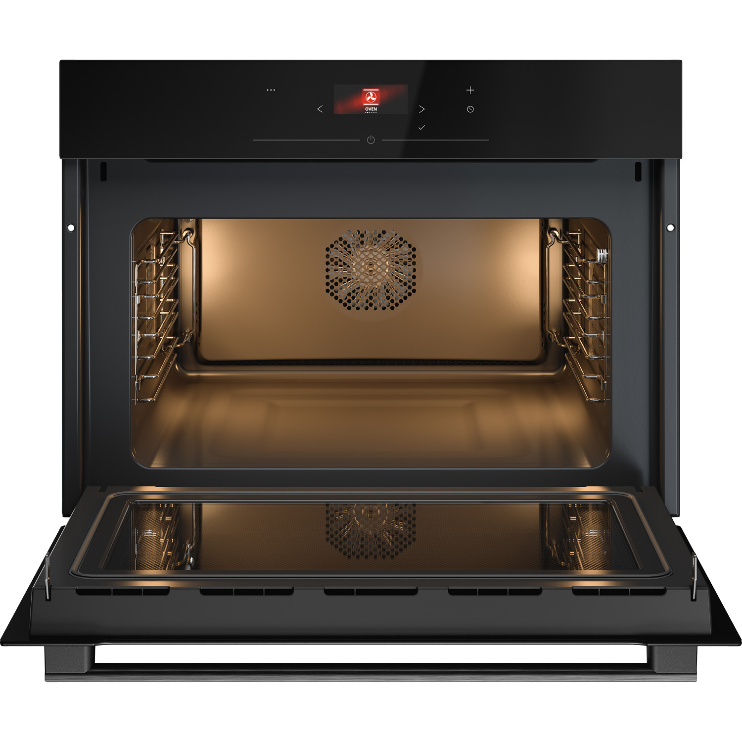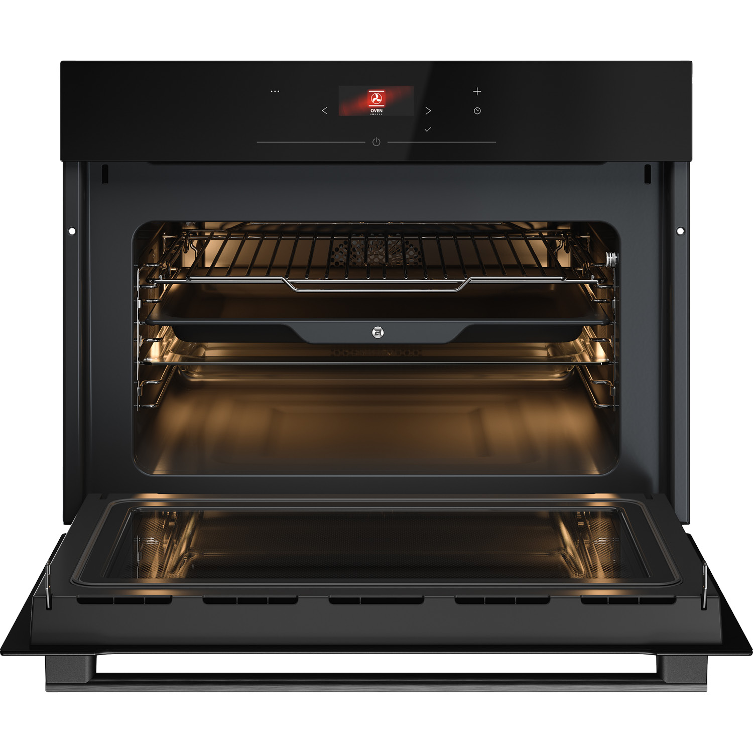 Piekarnik kompaktowy z mikrofalówką do zintegrowanej zabudowy w kolorze czarne szkło, 50 l, kolorowy wyświetlacz BIO24 TFT PREMIUM ENTRY + dotykowe sterowanie, termosonda, temp. do 250°C, zawiasy Dual Soft Close.