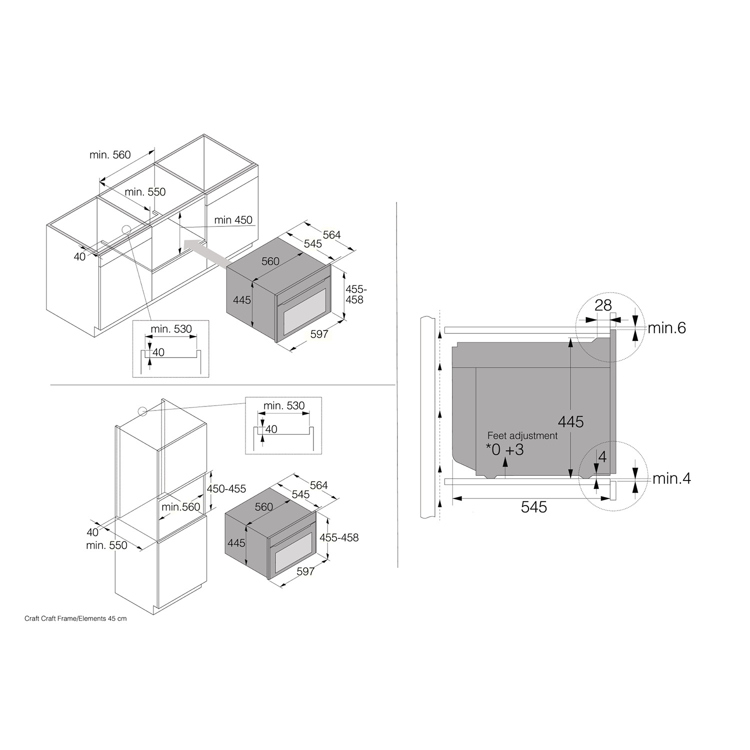 - Wymiary niszy (wysokość x szerokość x głębokość): 45~45,5 x 56 x 55 cm