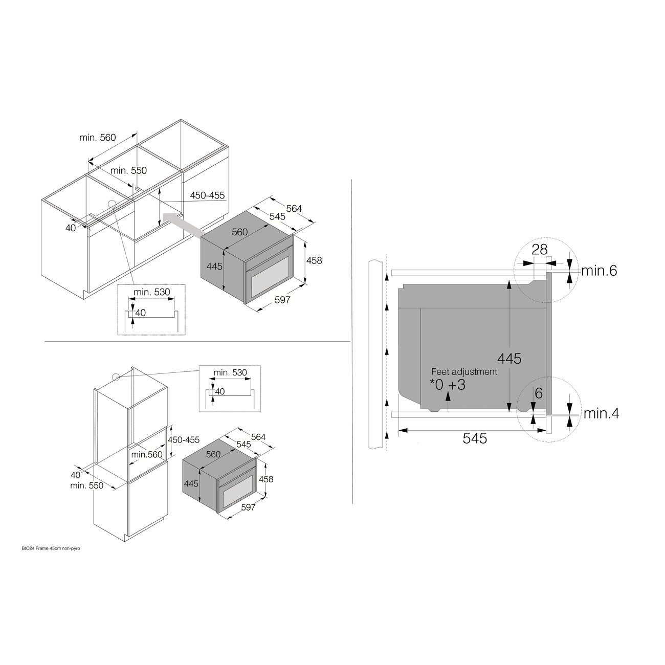 • Wymiary niszy (wysokość x szerokość x głębokość): 45~45,5 x 56 x 55 cm