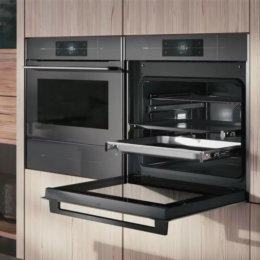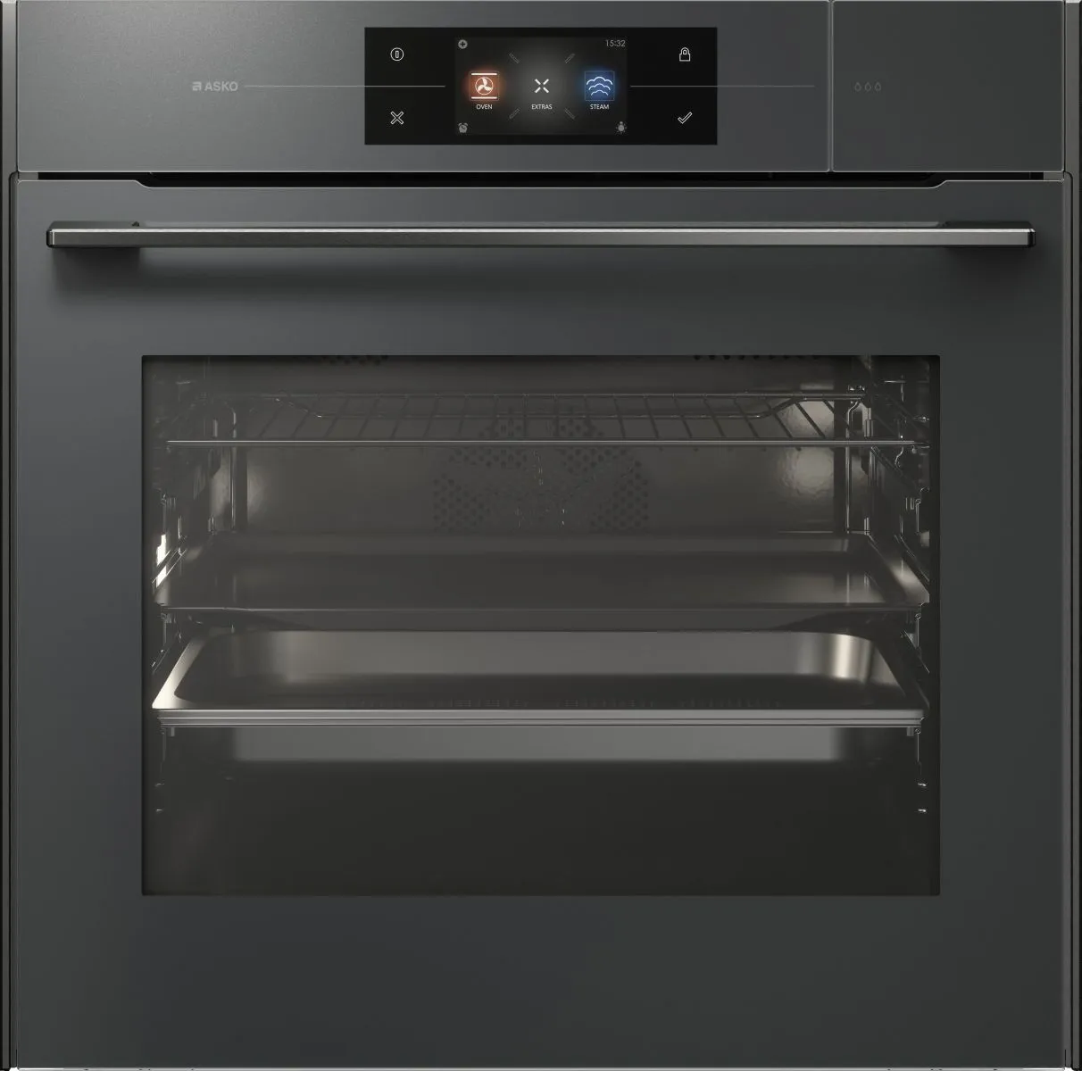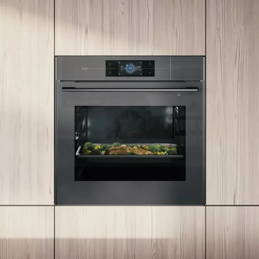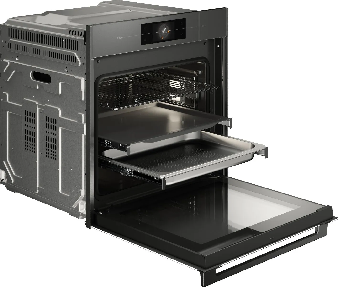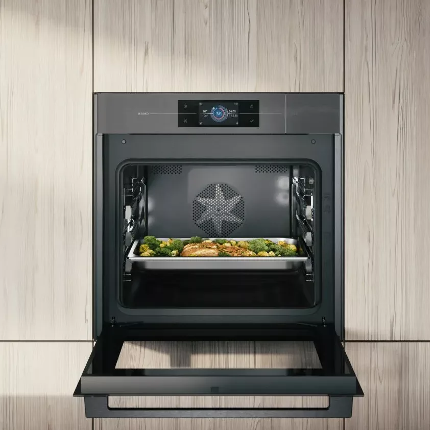 Piekarnik konwekcyjno-parowy do zintegrowanej zabudowy w kolorze szarym, wyświetlacz dotykowy TFT, 5 System Air Flow, System czystej pary, 73 l, AquaClean, 3 poziomy w pełni wysuwanych prowadnic teleskopowych, SousVide, Autopieczenie, Rozmrażanie, tryb ECO, A+.