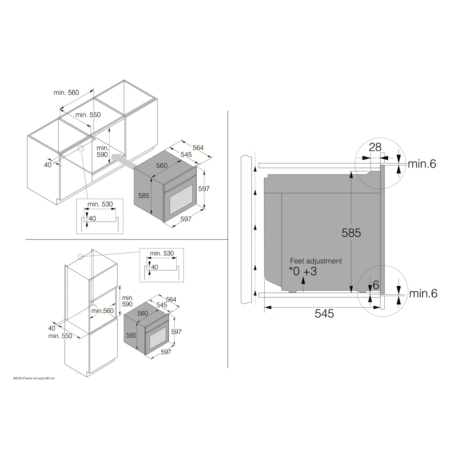 - Wymiary niszy (wysokość x szerokość x głębokość): 59 x 56 x 55 cm