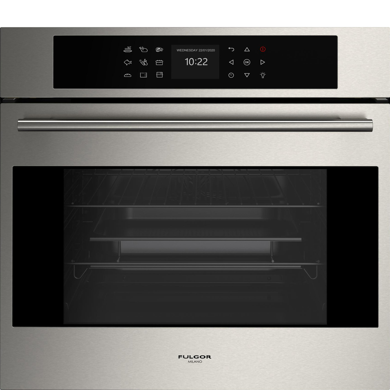 Piekarnik parowy Fulgor Milano ATMOS FCSO 6023 TEM X z serii Plano, w kolorze inox, z funkcją gotowania na parze, o szerokości 60 cm i wysokości 60 cm, A++, 65 l.