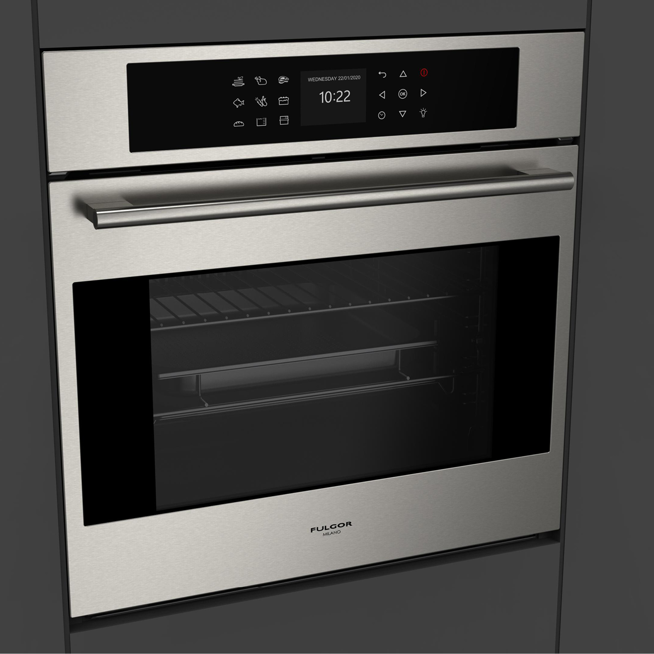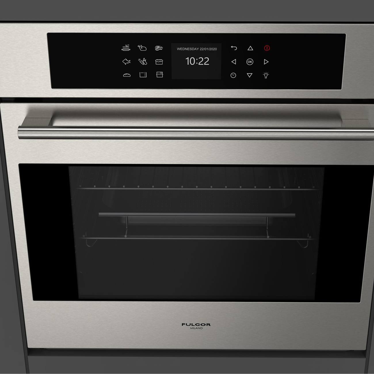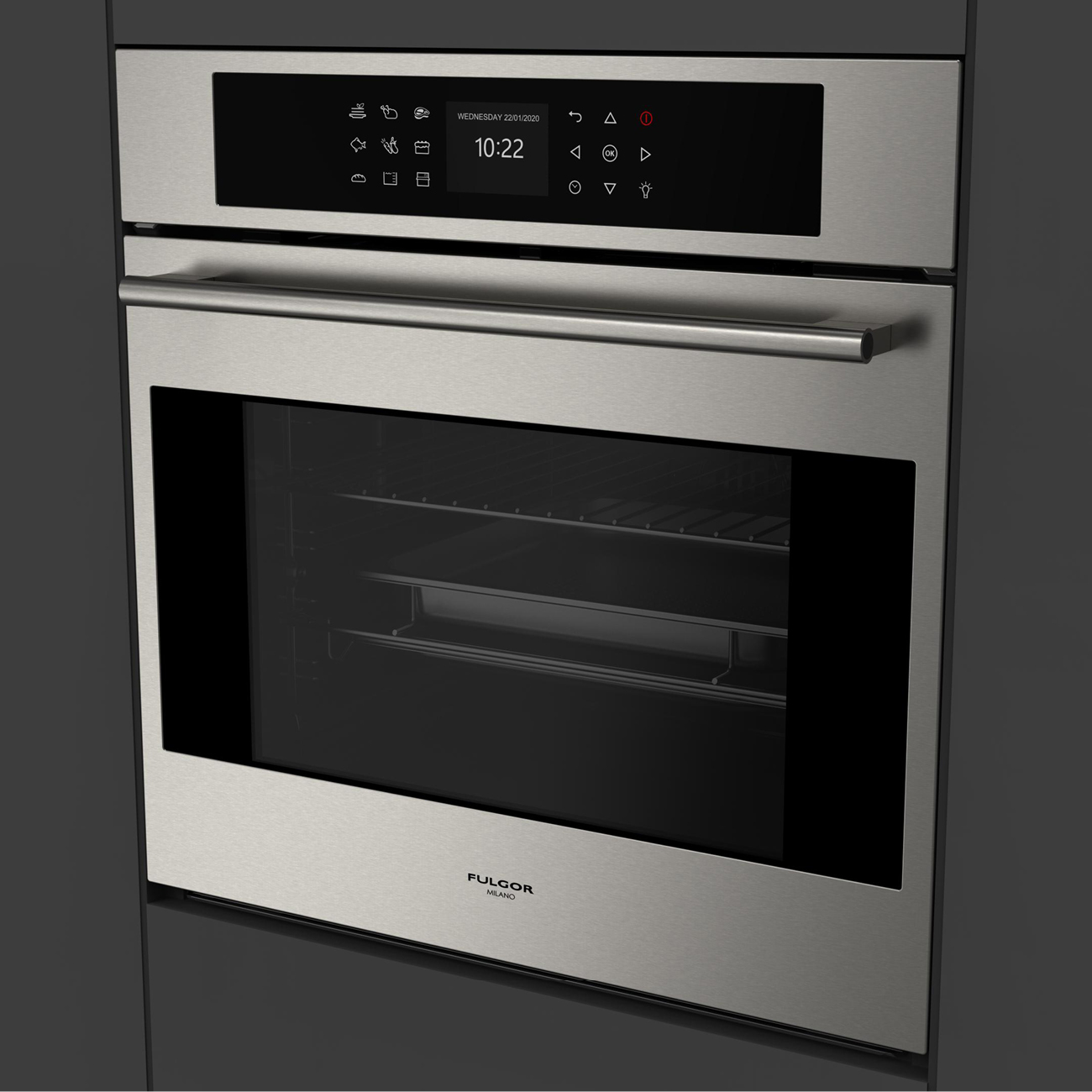 Wymiary, proporcje, wykończenie oraz charakterystyczny, elegancki uchwyt inox pozwalają na zestawienie go z innymi urządzeniami Fulgor Milano z tej samej linii Plano.