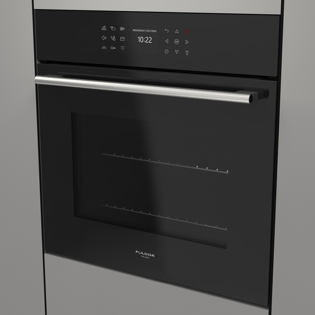 Brzydki zapach palonego tłuszczu po włączeniu piekarnika? Nie, jeśli wybierzesz piekarnik samoczyszczący Fulgor Milano! Podczas czyszczenia temperatura w komorze rośnie do ok. 460°C.