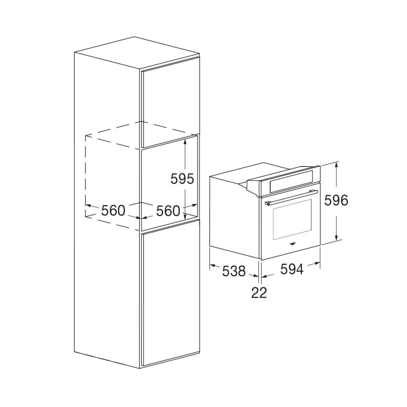 • Wymiary wnęki do zabudowy (wysokość x szerokość x głębokość): 59,5 x 56 x 56 cm
