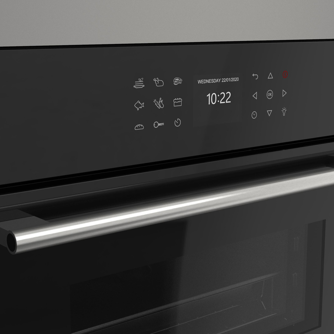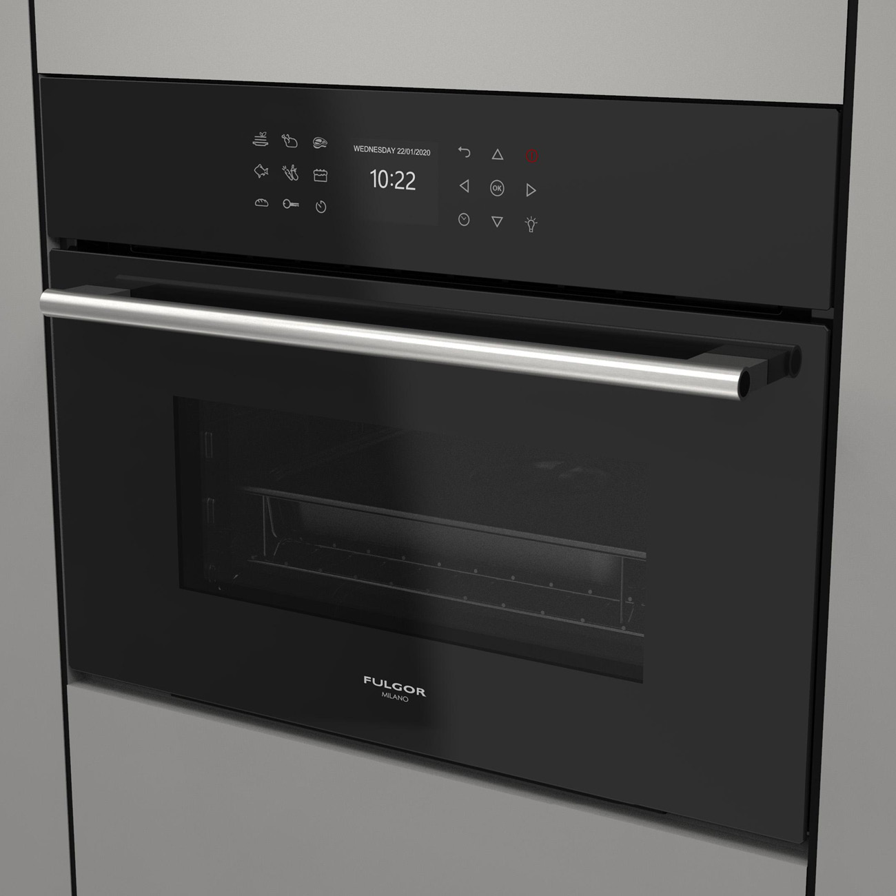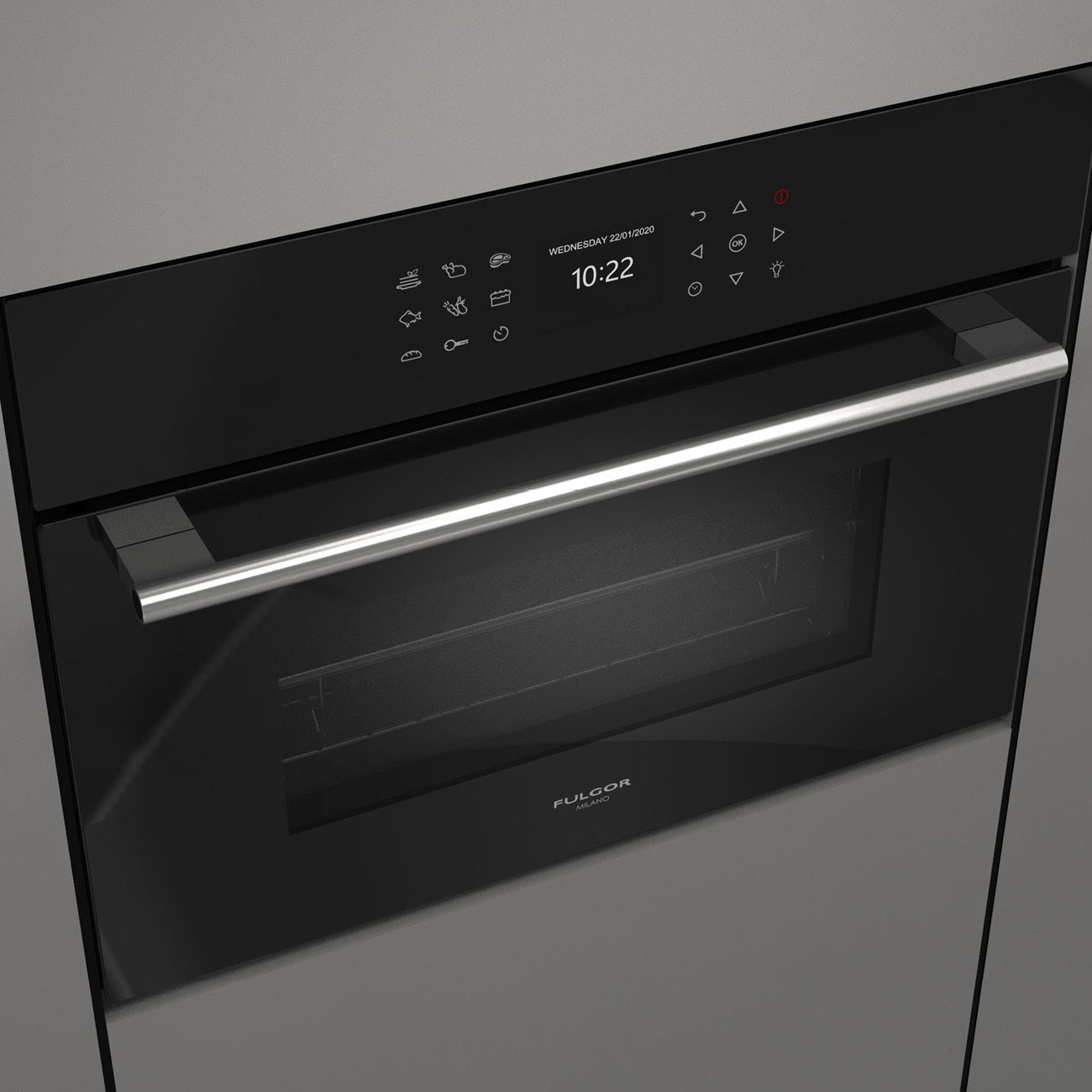 Piekarnik parowy Fulgor Milano FCSO 4510 TEM BK z serii Plano, w kolorze czarne szkło, z funkcją gotowania na parze o szerokości 60 cm i wysokości 45 cm, A++, 34 l.