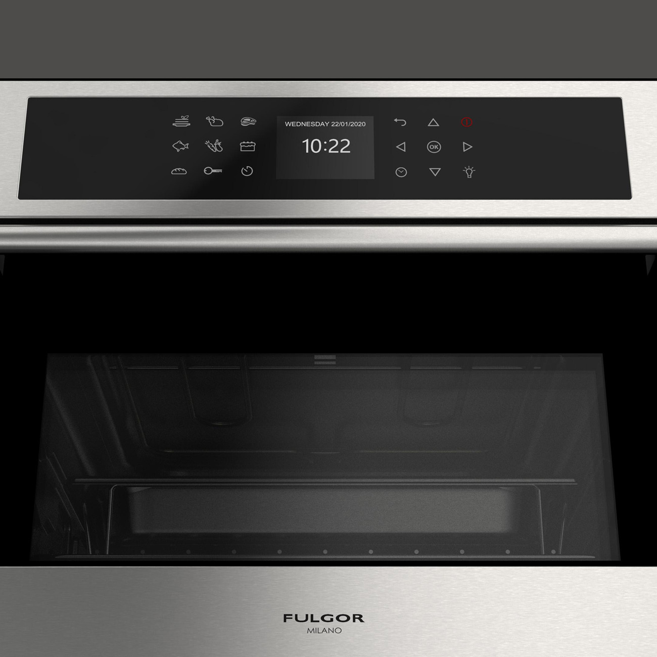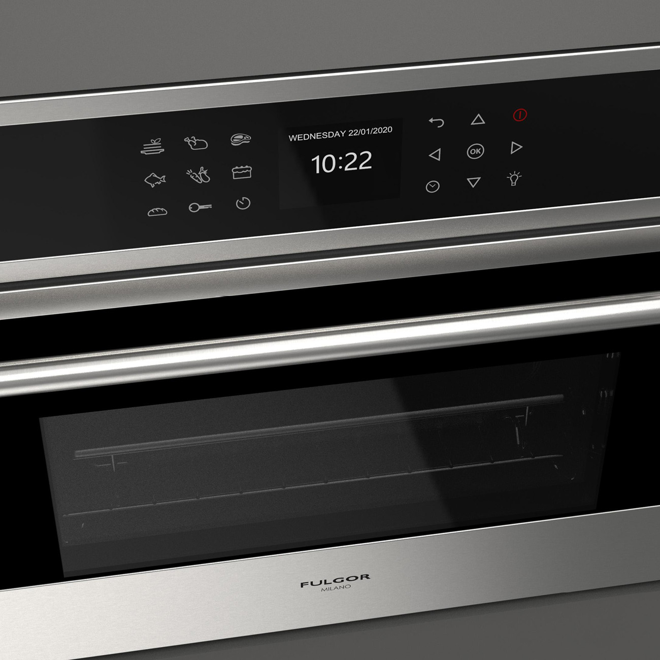 Dzięki systemowi operacyjnemu CREACTIVE Extended ze sterowaniem dotykowym, FULGOR MILANO wprowadza nowoczesny, intuicyjny sposób gotowania, który umożliwia przygotowanie skomplikowanych przepisów za pomocą kilku ustawień i otrzymywanie powiadomień podczas procesu pieczenia. Łączy nowoczesną technologię z prostą obsługą. Wystarczy wybrać żądany przepis na wyświetlaczu, a piekarnik automatycznie uruchomi najlepszy program. Idealny do bezproblemowego przygotowania wspaniałego posiłku.