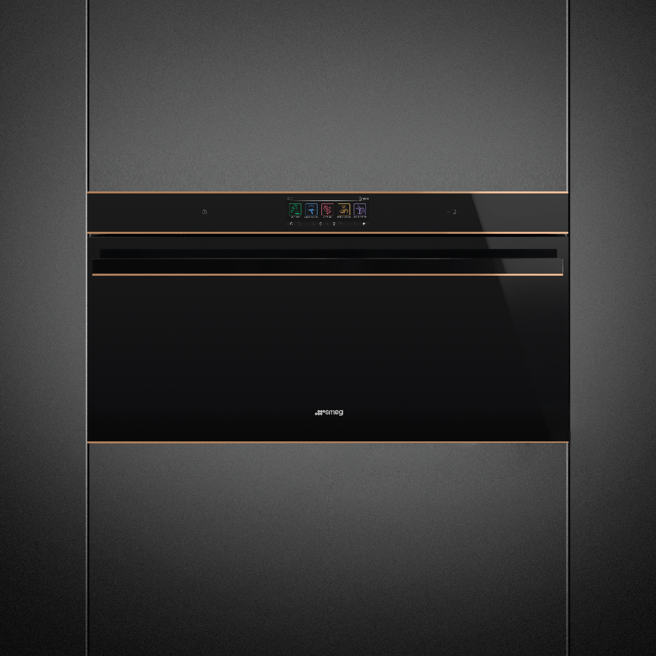 Piekarnik Smeg do zintegrowanej zabudowy z serii Dolce Stil Novo z miedzianym wykończeniem komponentów i 5-letnią gwarancją producenta, A+, czyszczenie pirolityczne, wyświetlacz VivoScreen max, 90 cm.