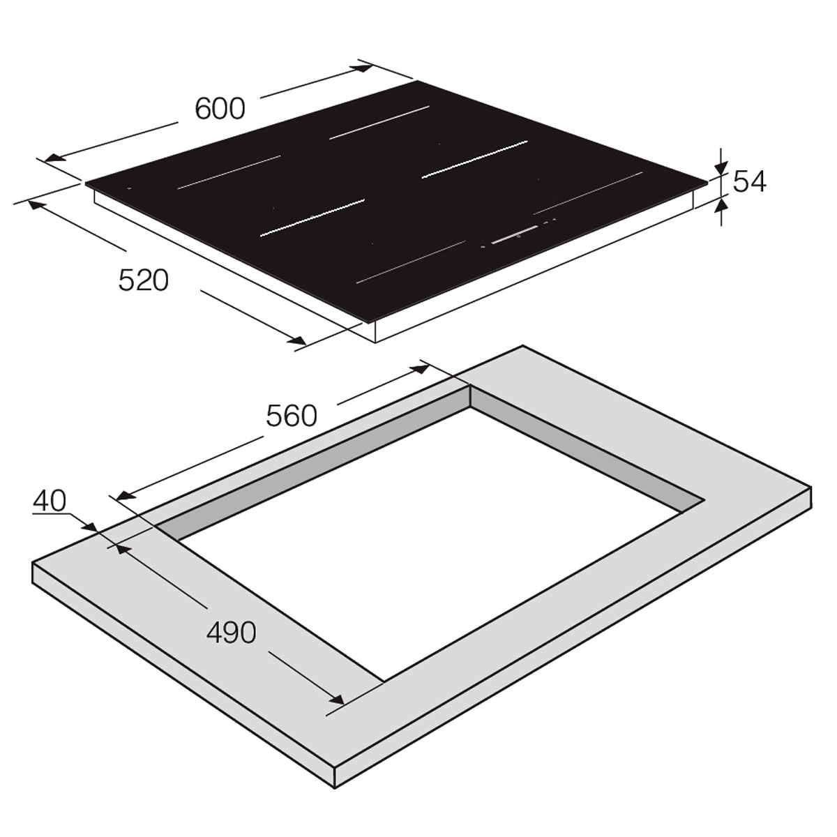 • Wymiary produktu (wysokość x szerokość x głębokość): 5,4 x 60 x 52 cm