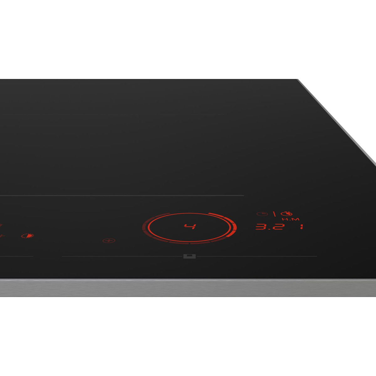 Płyta grzewcza indukcyjna na czarnym szkle z aluminiową ramą, 2 strefy gotowania, 1 strefa Bridge™, 12 poziomów mocy i funkcja Boost, sterowanie Easy Dial 2.0™, 3 programy Celsius°Cooking™, podłączenie płyty grzewczej z wyciągiem, Wi-Fi, automatyczne wykrywanie garnka, 38 cm.