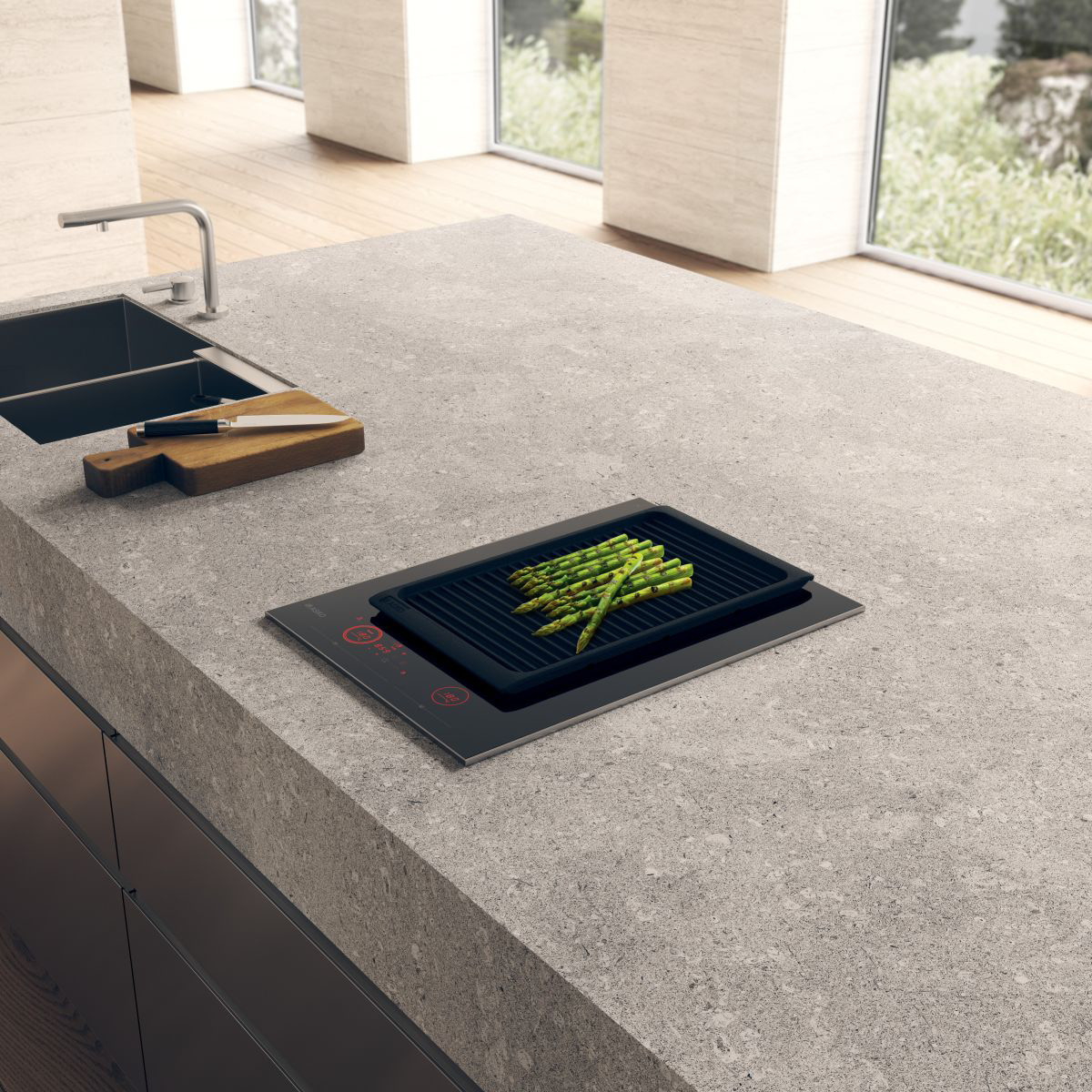 W przypadku korzystania z bardzo dużych garnków i patelni funkcja Auto Bridge w wyznaczonych strefach rozszerza obszar gotowania indukcyjnego i zapewnia całkowite pokrycie większych naczyń, patelni grillowych i teppanyaki.