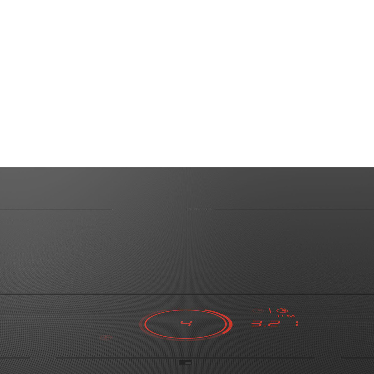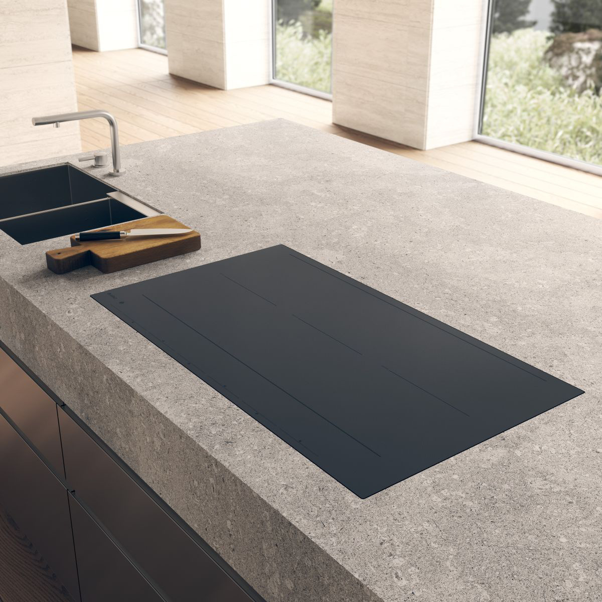 Płyta grzewcza indukcyjna na czarnym matowym szkle z czarnymi listwami ze stali nierdzewnej, 6 stref gotowania, 3 strefy Bridge™, 12 poziomów mocy i funkcja Boost, sterowanie Easy Dial 2.0™, 3 programy Celsius°Cooking™, podłączenie płyty grzewczej z wyciągiem, Wi-Fi, automatyczne wykrywanie garnka, w zestawie Celsius°Cooking™ sonda, 90 cm.