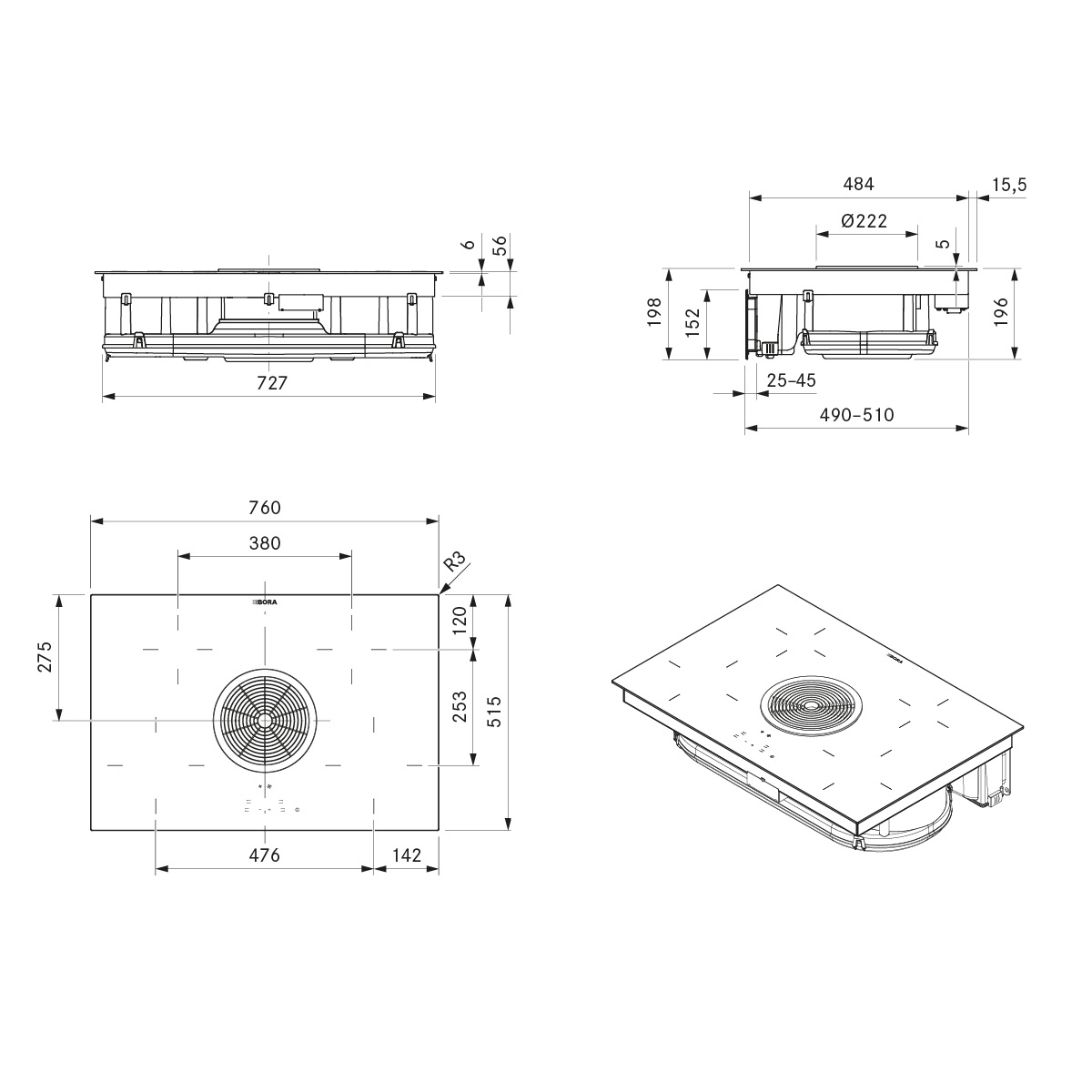 - Płyta grzewcza Hyper ze zintegrowanym wyciągiem oparów — Powietrze w obwodzie zamkniętym BHU