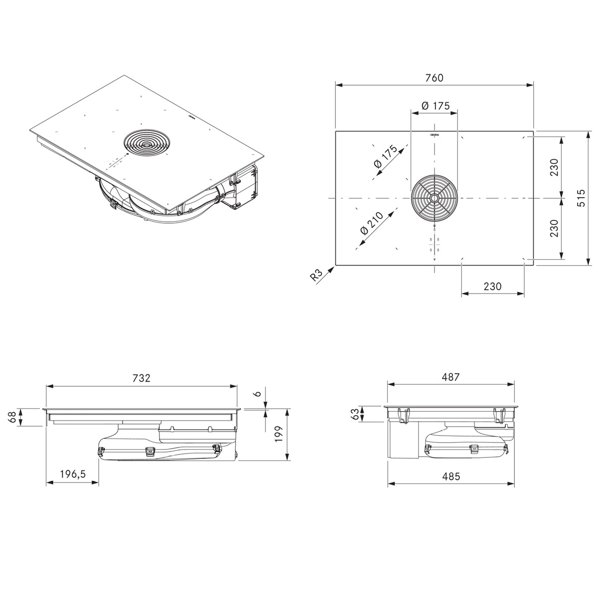 - System wyciągu oparów Pure można łączyć ze wszystkimi gniazdami BORA
