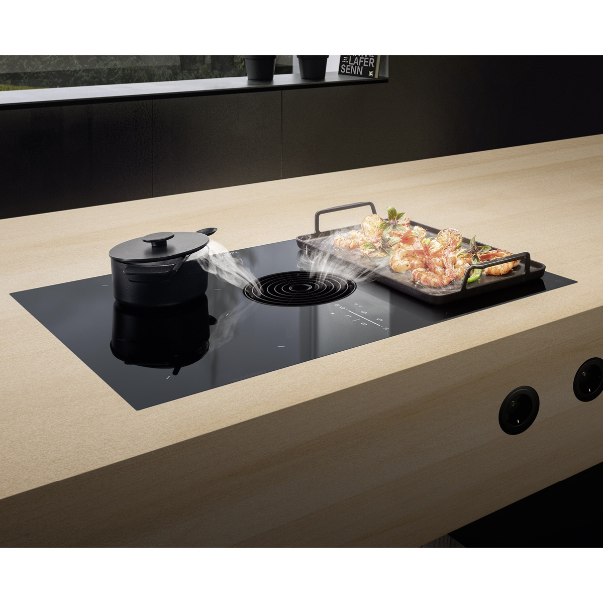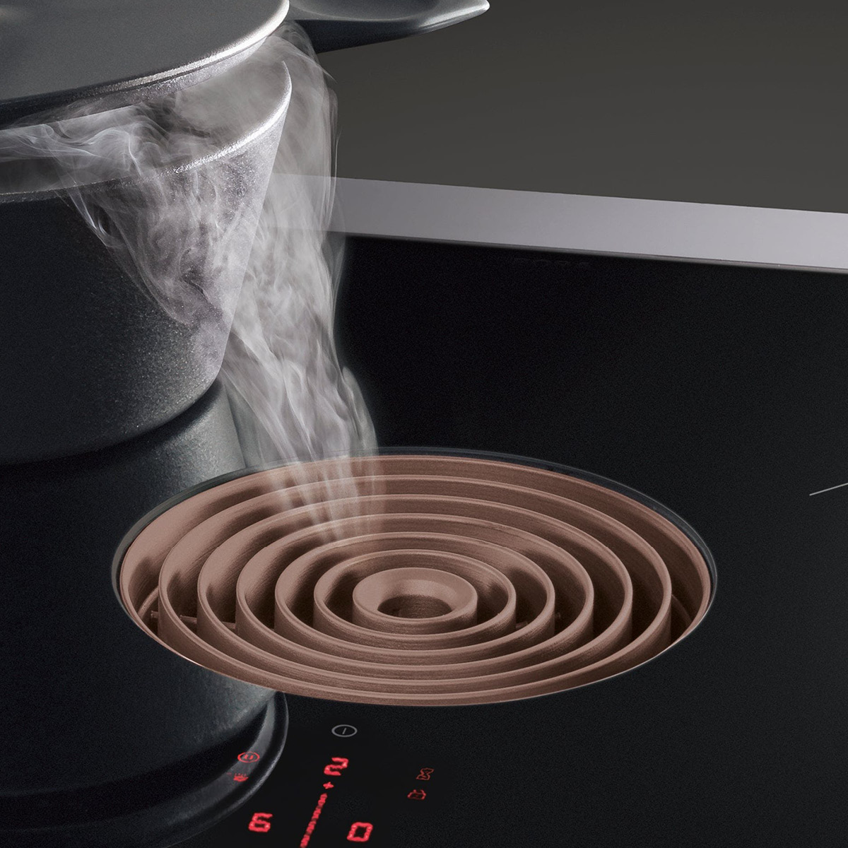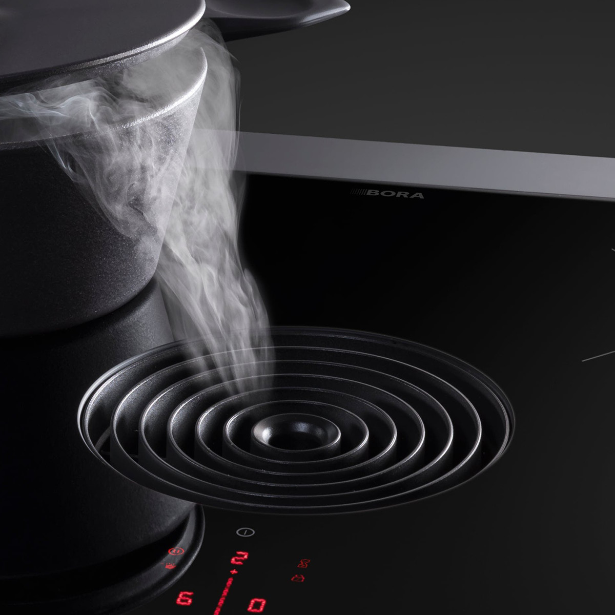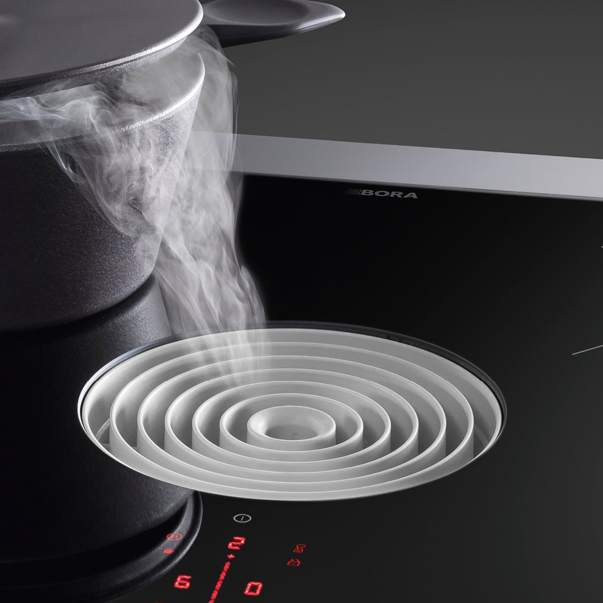 Zawsze bardzo cicho – nawet przy wysokich poziomach mocy: Powodem jest optymalne prowadzenie powietrza i korzystanie z wyjątkowo cichego wentylatora. Podczas gotowania nie dekoncentrują nas żadne niepożądane hałasy i możemy bez przeszkód kontynuować rozmowy.