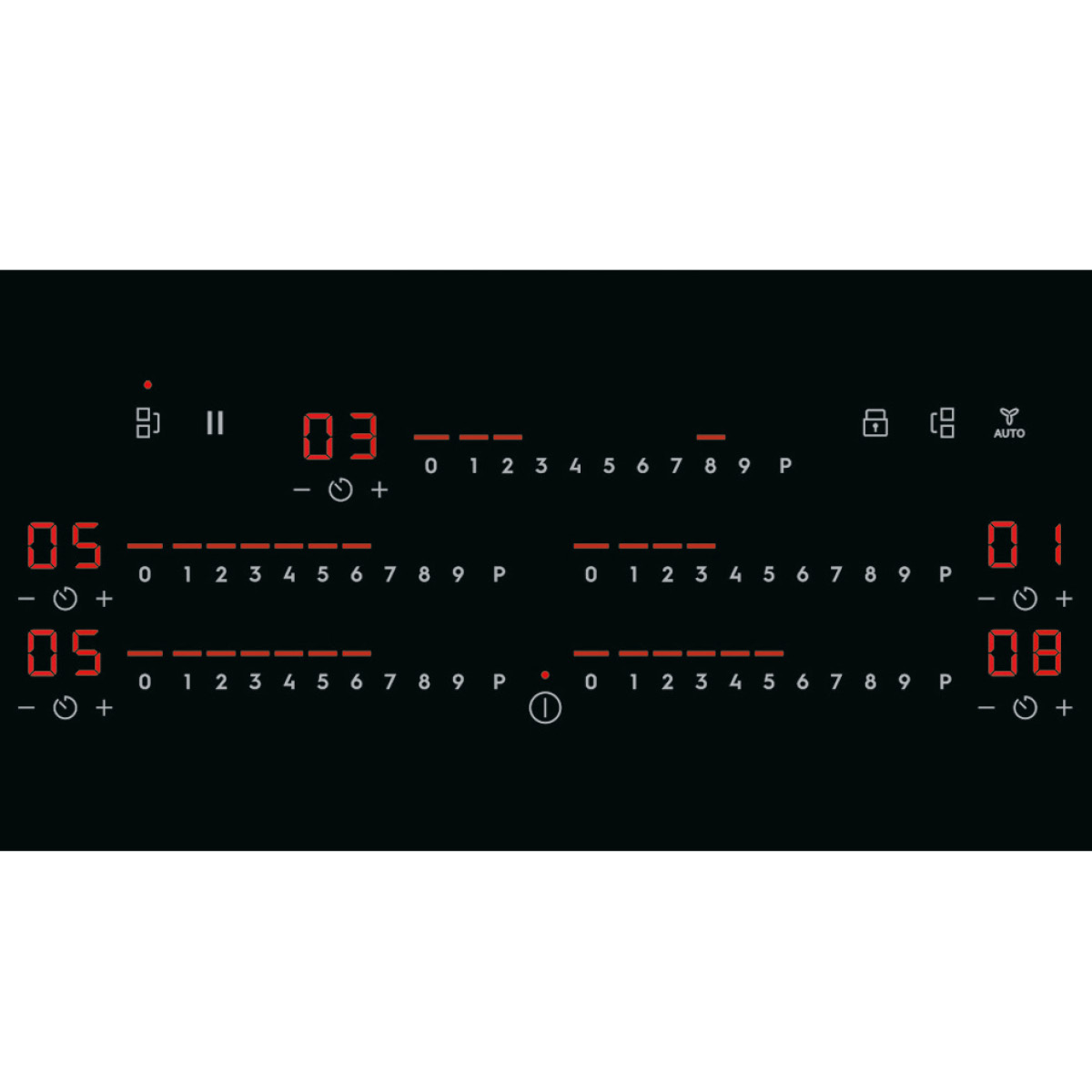 - Strefa tylna środkowa: indukcyjna,2300/3200 W/210 mm