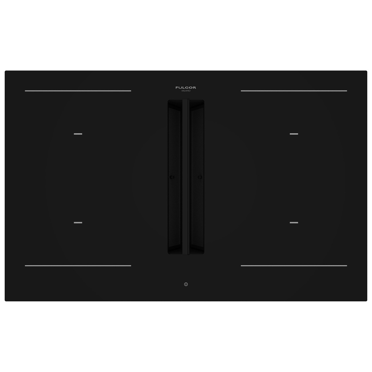 Indukcyjna płyta grzewcza ze zintegrowanym okapem do zabudowy Fulgor Milano ARIA+ FHH 800 ID TC BK w kolorze czarnym, oświetlenie LED, 4 pola grzewcze, 2 strefy bridge, dotykowy panel sterowania, funkcja Chef, 80 cm.