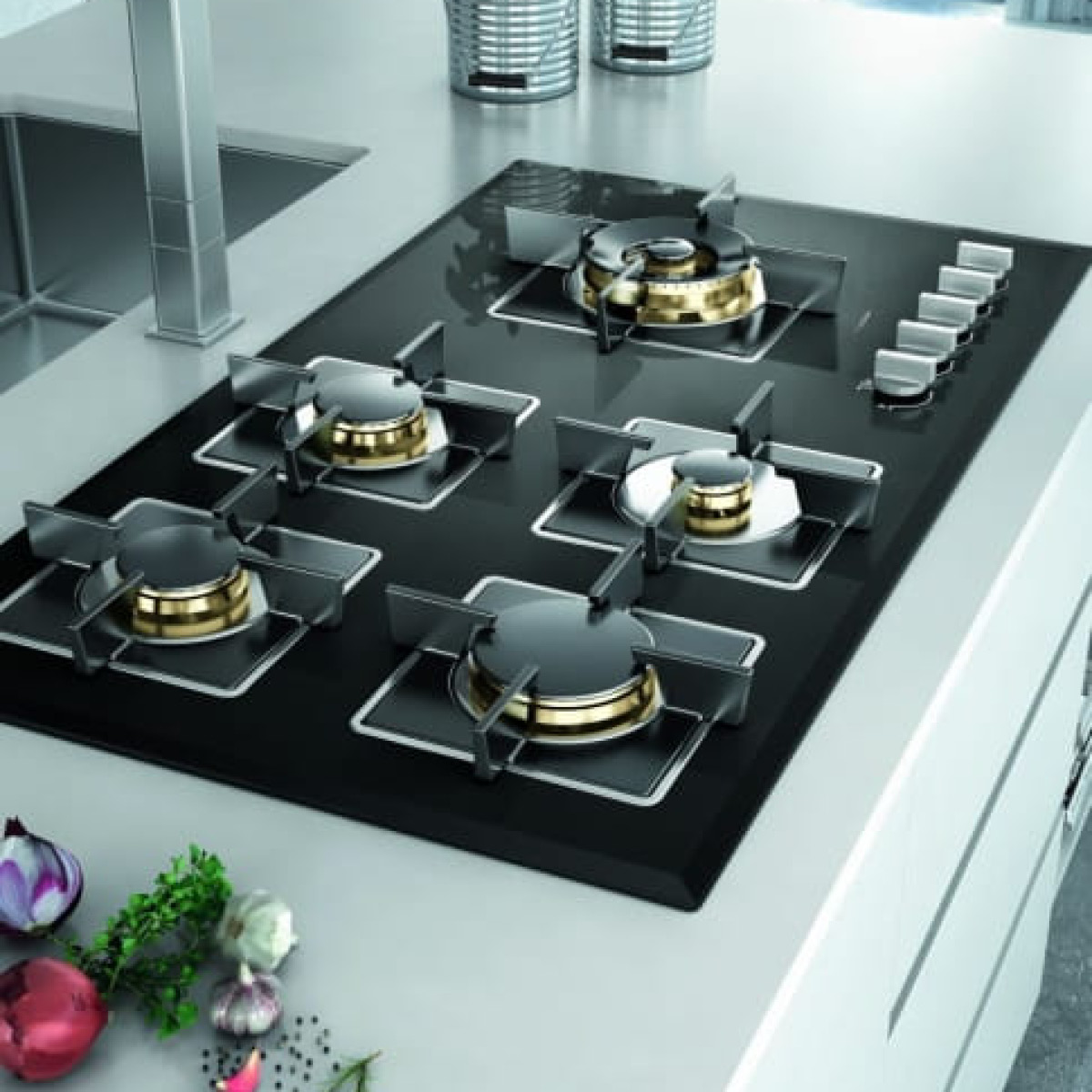 5 palników z mosiężnymi podstawami, w tym 1 o potrójnej koronie typu WOK (4,0 kW)