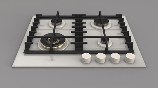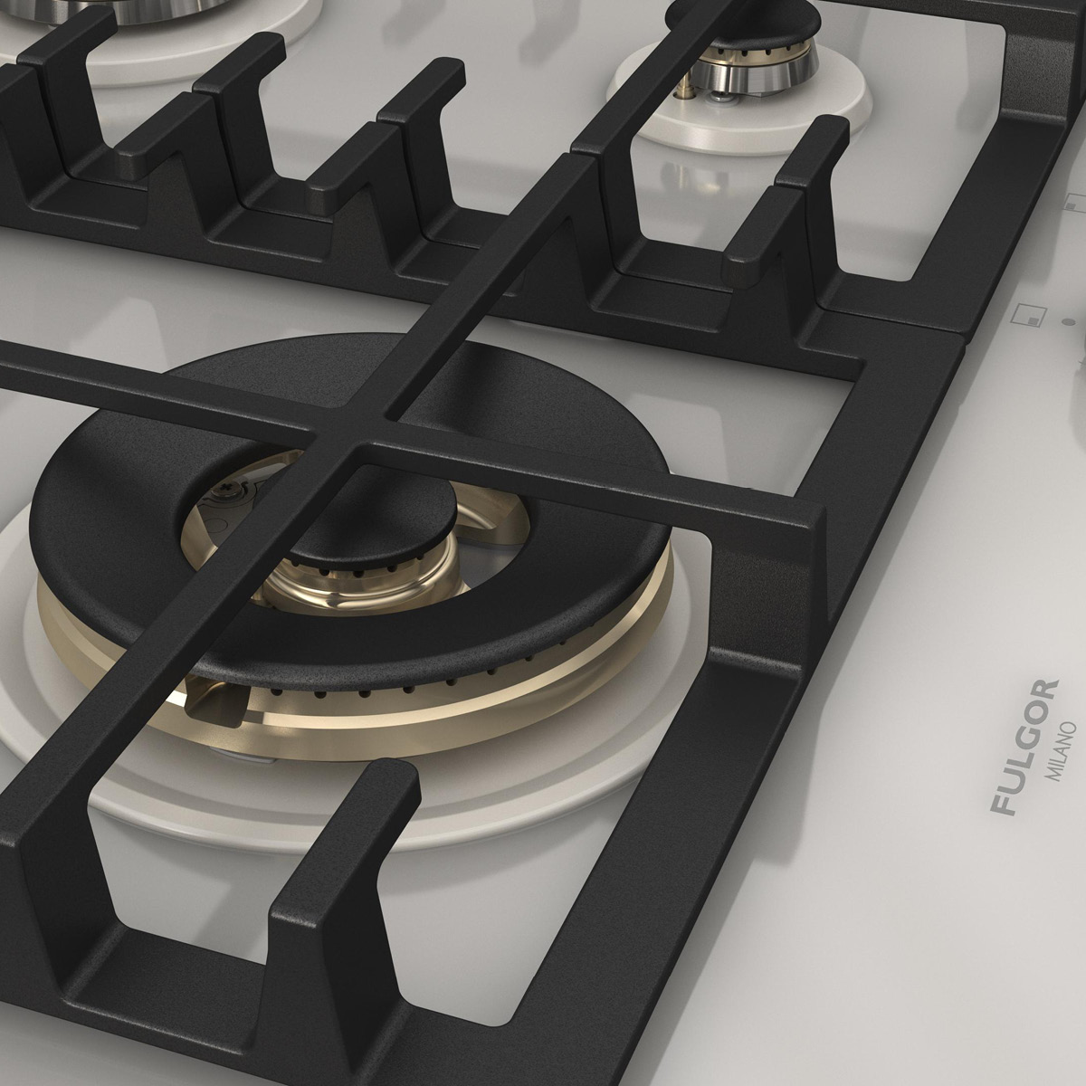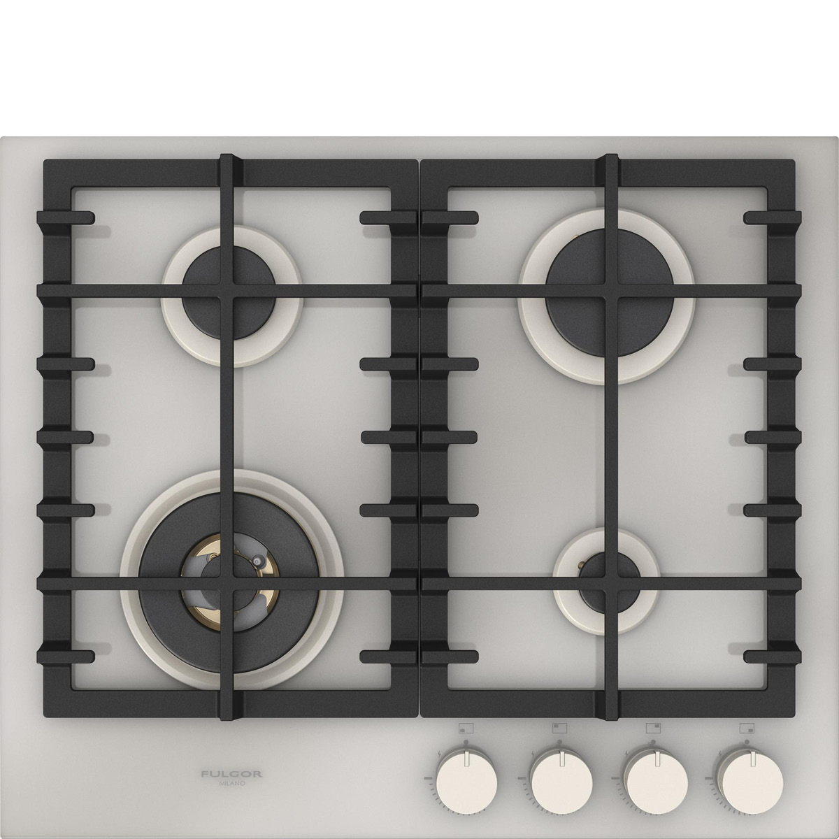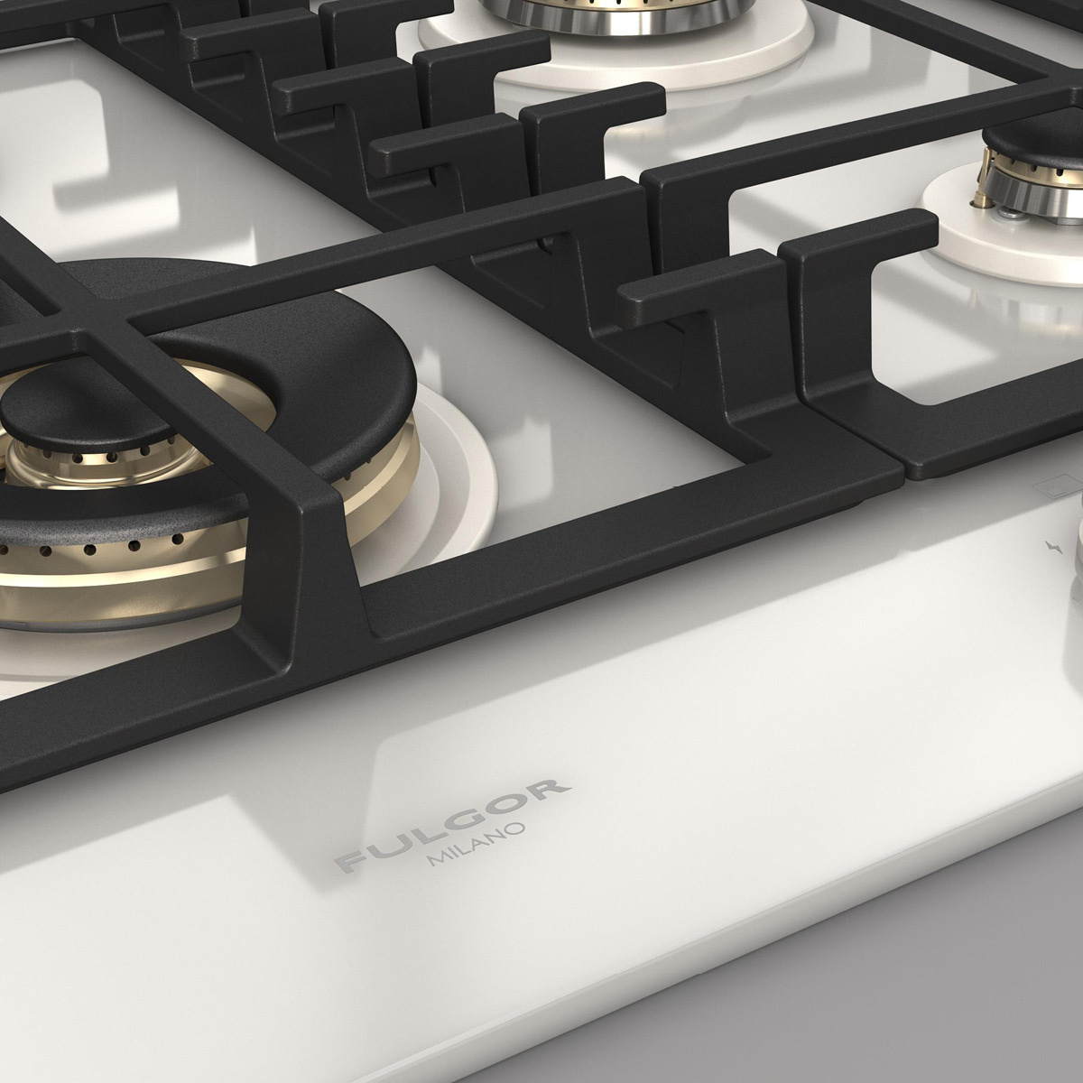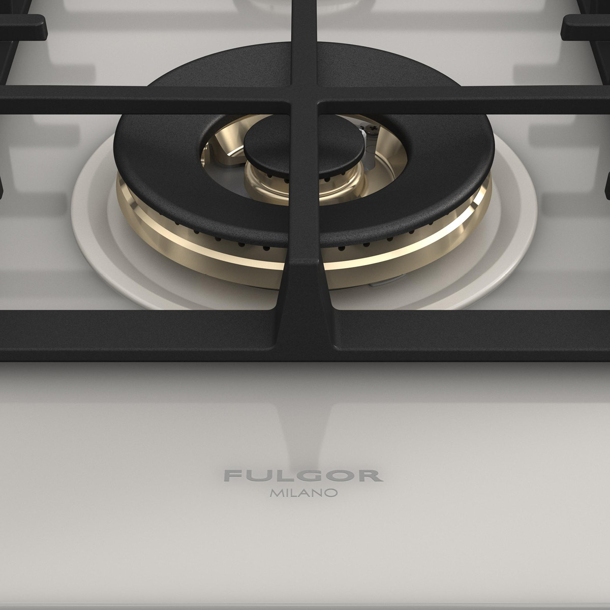 Płyta o szerokości 62 cm posiada unikalny, ekskluzywny design i wykończenie z białego szkła. Wyposażona jest w 4 mosiężne palniki, w tym jeden duży, podwójny typu WOK (4,0 kW) po lewej stronie i metalowe pokrętła w białym kolorze matowym. Żeliwne ruszty na całej powierzchni zapewniają maksymalne bezpieczeństwo i wygodę podczas przesuwania patelni lub garnków z jednego palnika na drugi. Płyta posiada także zawór przeciwwypływowy gazu, aby zapobiec ewentualnym wyciekom. W zestawie z płytą znajduje się żeliwna nakładka na WOK-a. Urządzenia Fulgor Milano produkowane są we Włoszech.