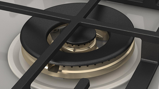 - 4 palniki z mosiężnymi pierścieniami, w tym 1 o podwójnej koronie typu WOK (4.0 kW)