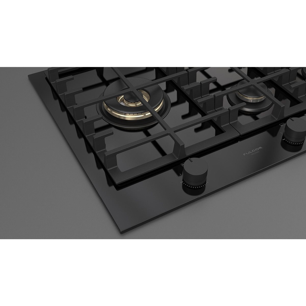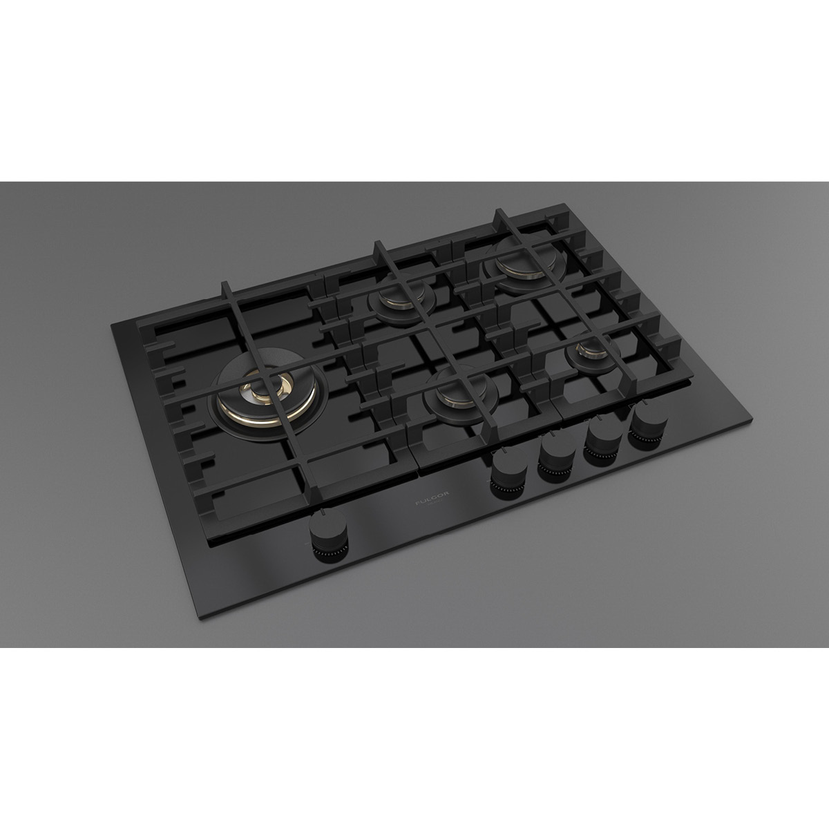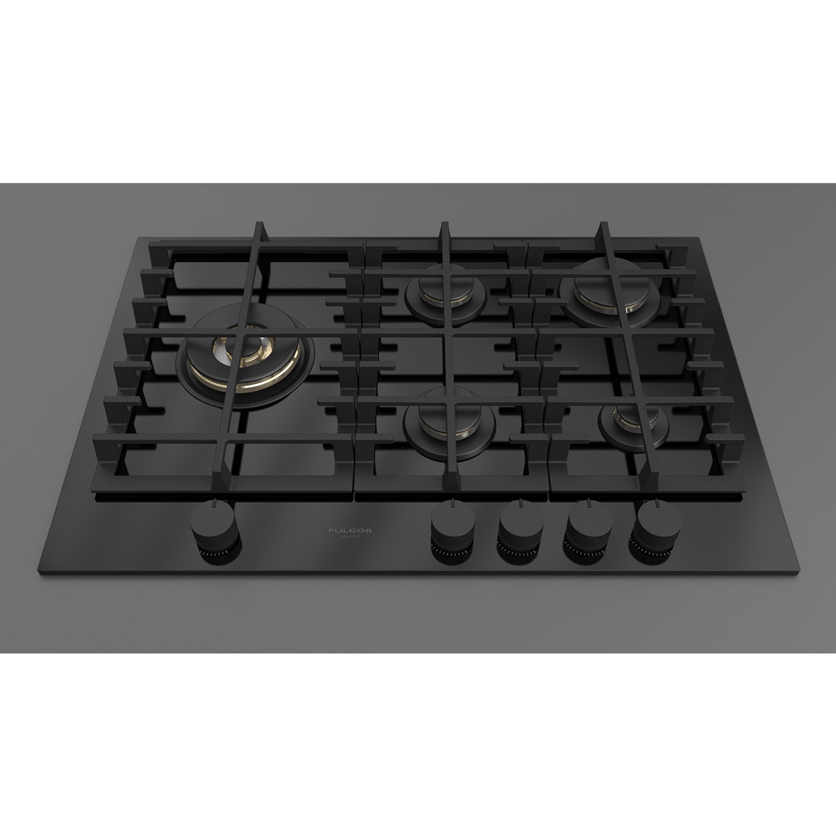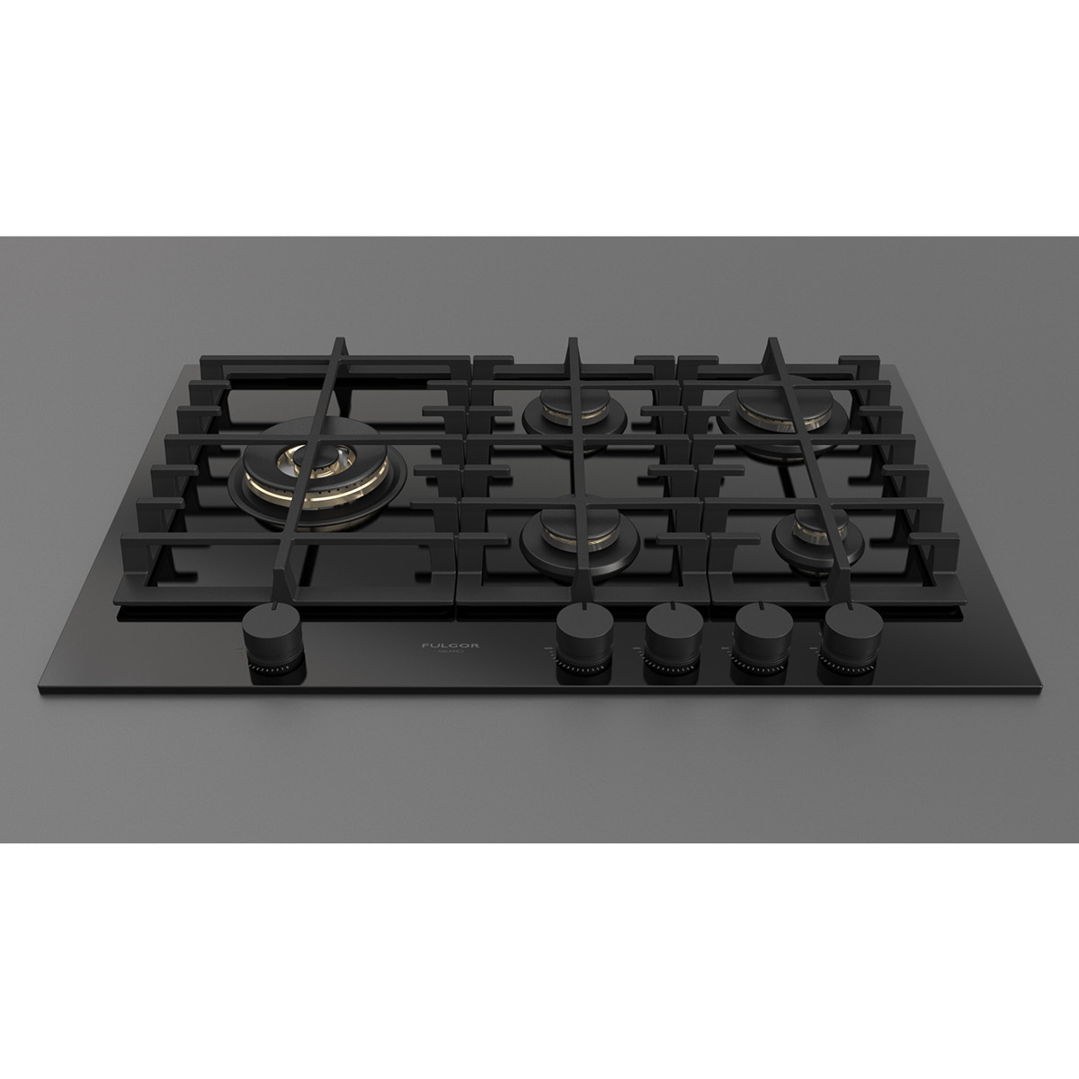 Płyta o szerokości 76 cm posiada unikalny, ekskluzywny design i wykończenie z czarnego szkła. Wyposażona jest w 5 mosiężnych palników, w tym jeden duży, podwójny typu WOK (4,0 kW) po lewej stronie i metalowe pokrętła w czarnym kolorze matowym. Żeliwne ruszty na całej powierzchni zapewniają maksymalne bezpieczeństwo i wygodę podczas przesuwania patelni lub garnków z jednego palnika na drugi. Płyta posiada także zawór przeciwwypływowy gazu, aby zapobiec ewentualnym wyciekom. W zestawie z płytą znajduje się żeliwna nakładka na WOK-a. Urządzenia Fulgor Milano produkowane są we Włoszech.