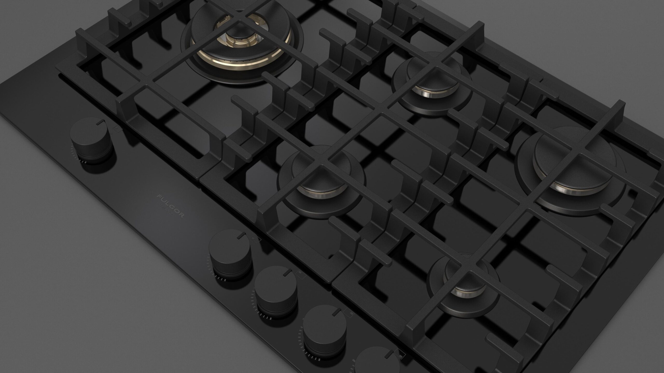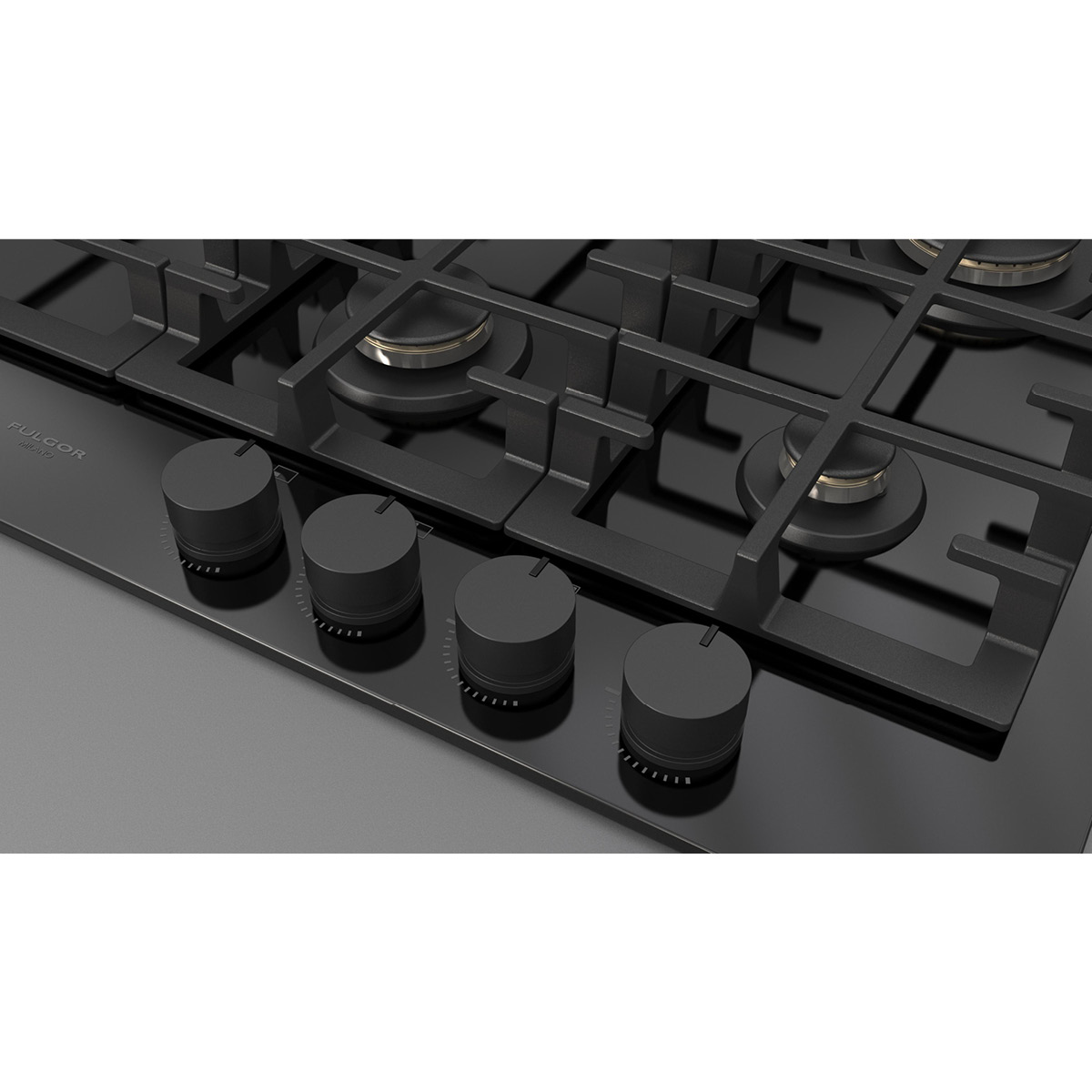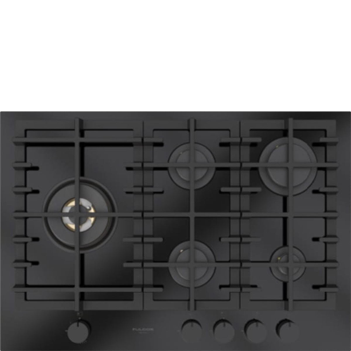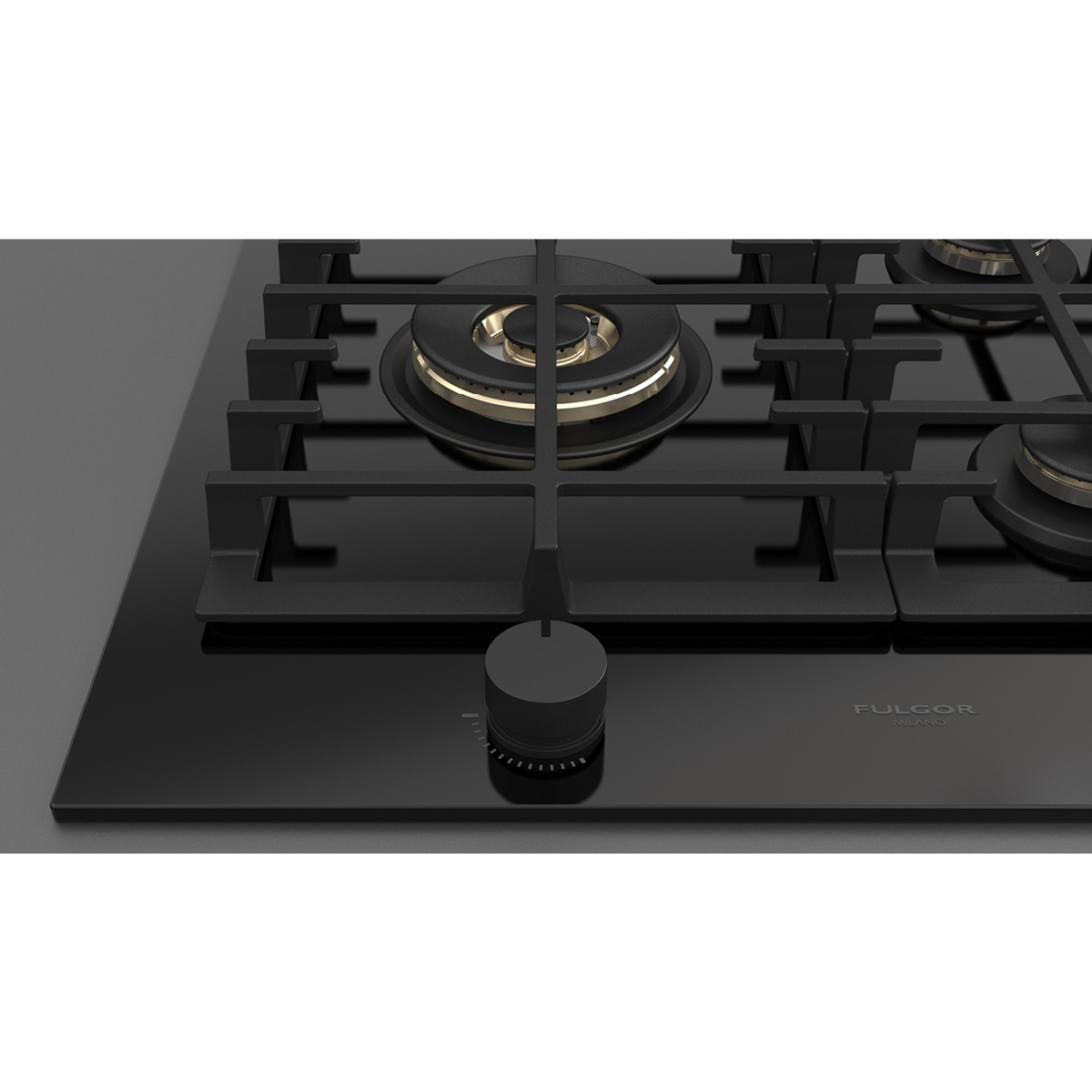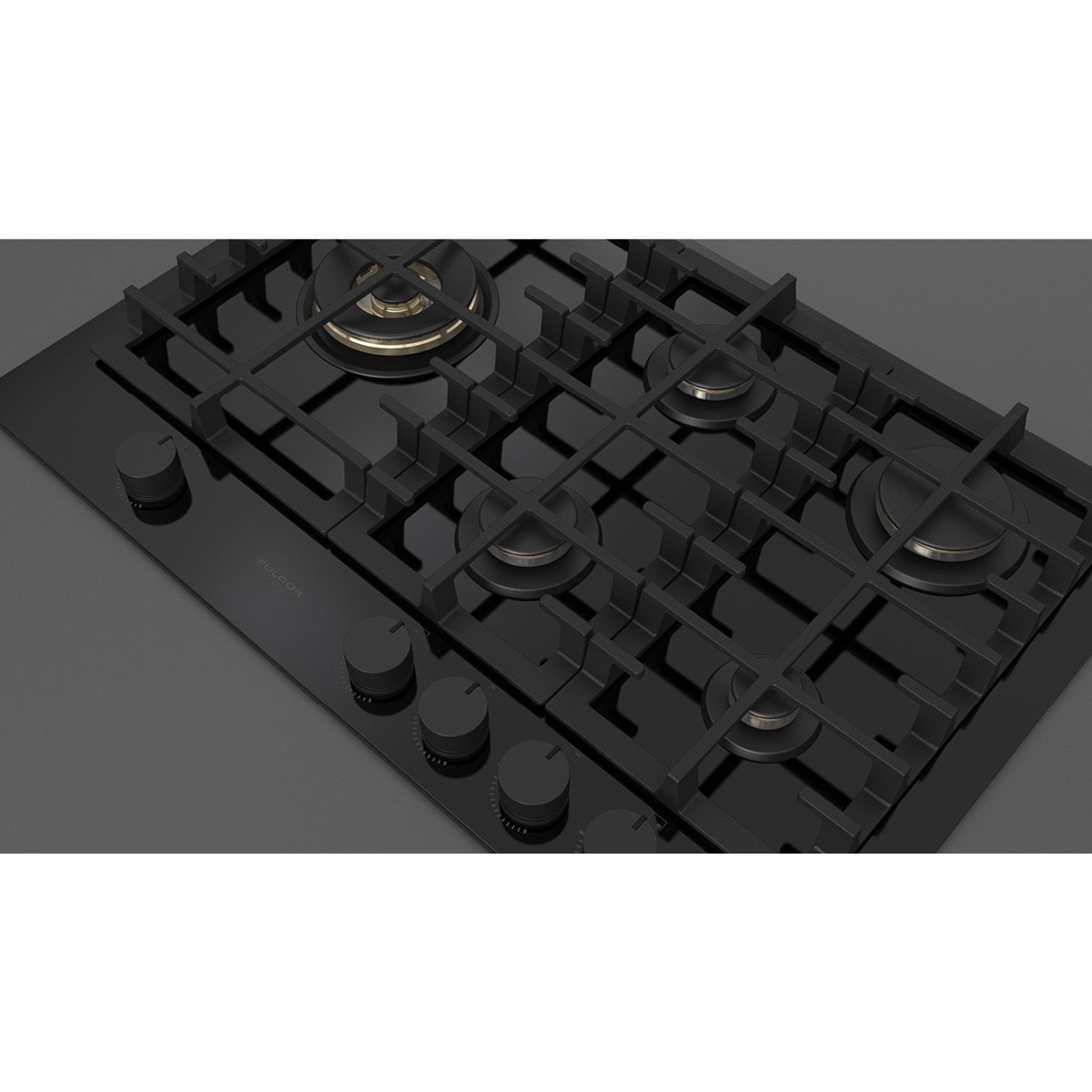 Płyta o szerokości 76 cm posiada unikalny, ekskluzywny design i wykończenie z czarnego szkła. Wyposażona jest w 5 mosiężnych palników, w tym jeden duży, podwójny typu WOK (4,0 kW) po lewej stronie i metalowe pokrętła w czarnym kolorze matowym. Żeliwne ruszty na całej powierzchni zapewniają maksymalne bezpieczeństwo i wygodę podczas przesuwania patelni lub garnków z jednego palnika na drugi. Płyta posiada także zawór przeciwwypływowy gazu, aby zapobiec ewentualnym wyciekom. W zestawie z płytą znajduje się żeliwna nakładka na WOK-a. Urządzenia Fulgor Milano produkowane są we Włoszech.