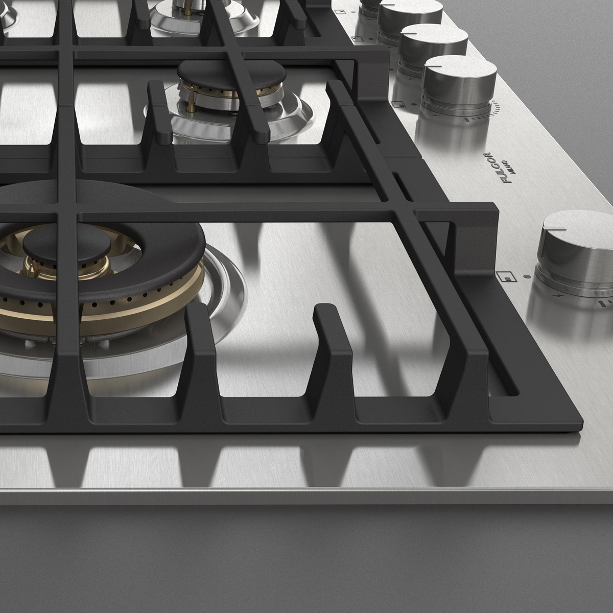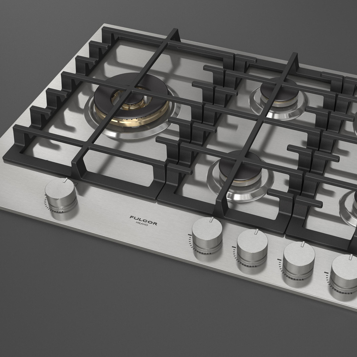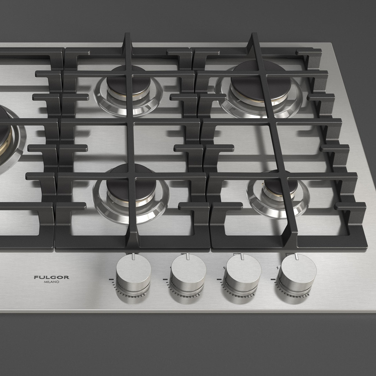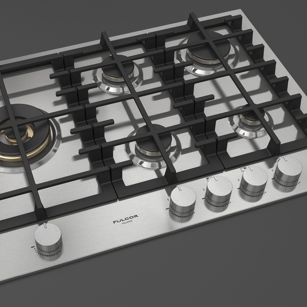 Płyta o szerokości 76 cm posiada unikalny, ekskluzywny design i wykończenie w satynowej stali nierdzewnej. Wyposażona jest w 5 mosiężnych palników, w tym jeden duży, podwójny typu WOK (4,0 kW) po lewej stronie i metalowe pokrętła inox. Żeliwne ruszty na całej powierzchni zapewniają maksymalne bezpieczeństwo i wygodę podczas przesuwania patelni lub garnków z jednego palnika na drugi. Płyta posiada także zawór przeciwwypływowy gazu, aby zapobiec ewentualnym wyciekom. W zestawie z płytą znajduje się żeliwna nakładka na WOK-a. Urządzenia Fulgor Milano produkowane są we Włoszech.