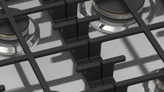 - Masywne, profesjonalne ruszty żeliwne na całej powierzchni płyty – zapewniają bezpieczne przesuwanie garnków i patelni