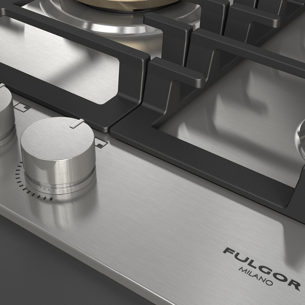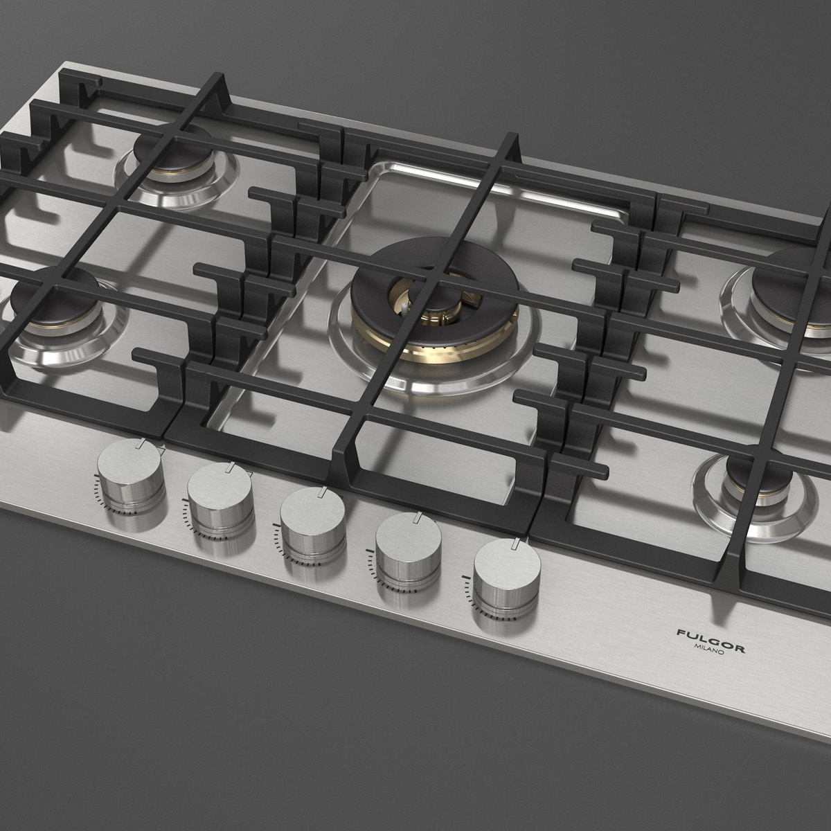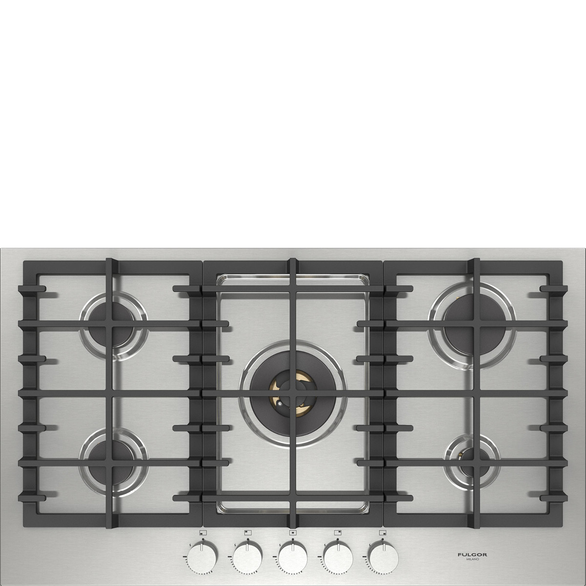 Płyta o szerokości 90 cm posiada unikalny, ekskluzywny design i wykończenie w satynowej stali nierdzewnej. Wyposażona jest w 5 mosiężnych palników, w tym jeden duży, podwójny typu WOK (4,0 kW) położony centralnie i metalowe pokrętła inox. Żeliwne ruszty na całej powierzchni zapewniają maksymalne bezpieczeństwo i wygodę podczas przesuwania patelni lub garnków z jednego palnika na drugi. Płyta posiada także zawór przeciwwypływowy gazu, aby zapobiec ewentualnym wyciekom. W zestawie z płytą znajduje się żeliwna nakładka na WOK-a. Urządzenia Fulgor Milano produkowane są we Włoszech.
