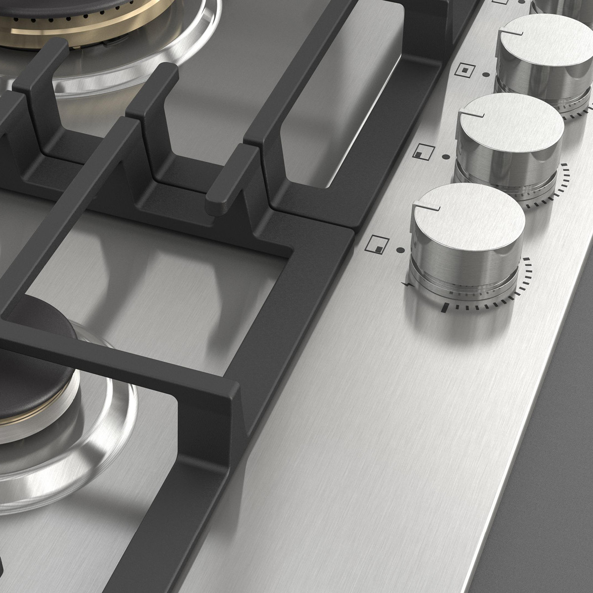Idealnie dopasowane do designu płyty metalowe pokrętła inox są łatwe w użyciu i zapewniają precyzyjną kontrolę nad procesem gotowania.