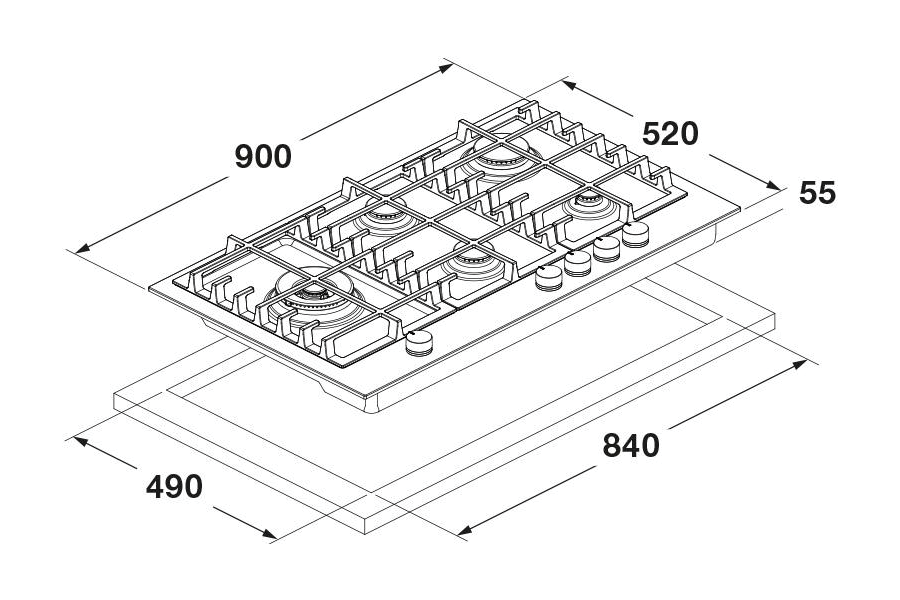 • Masywne, profesjonalne ruszty żeliwne na całej powierzchni płyty – zapewniają bezpieczne przesuwanie garnków i patelni