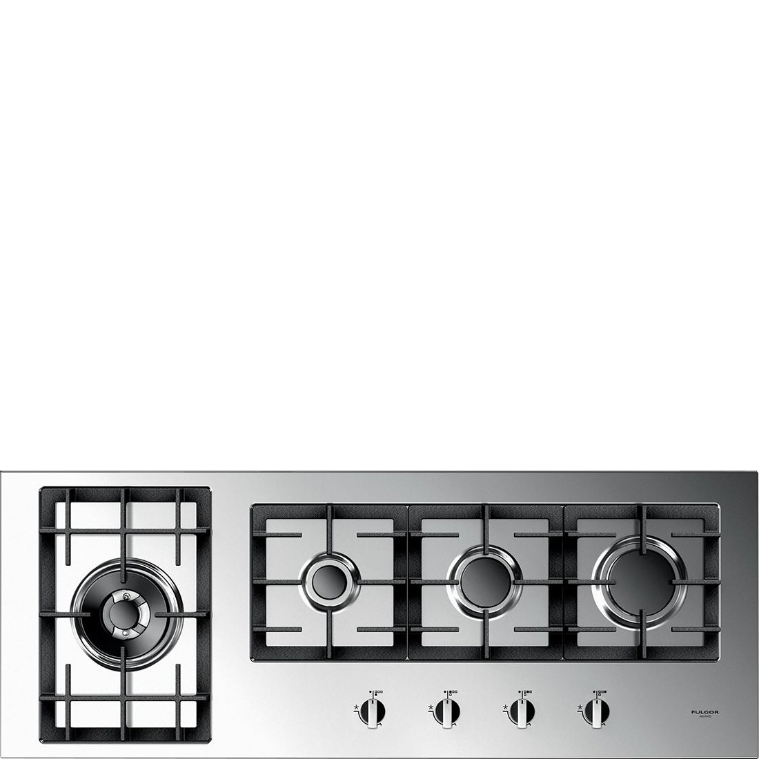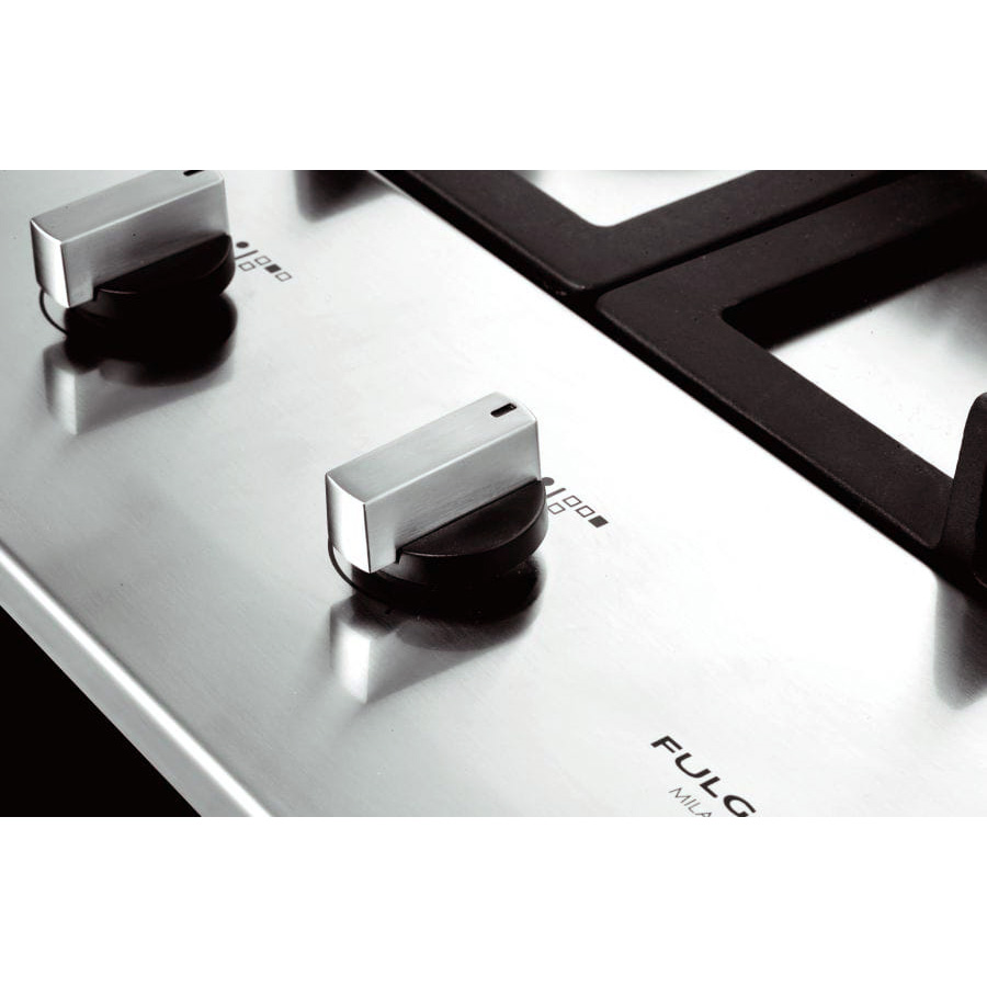 Płyta gazowa wykonana jest z blachy inox o grubości 5 mm. Posiada 4 mosiężne palniki ułożone w jednej linii, w tym 2 duże, podwójne typu WOK (4,0 kW) z regulacją DUAL. Żeliwne ruszty zostały zaprojektowane tak, aby zapewnić najlepszą możliwą stabilność każdej strefie gotowania. Płyta wyposażona jest także w zawór przeciwwypływowy gazu, aby zapobiec ewentualnym wyciekom. W zestawie z płytą znajduje się żeliwna nakładka do WOK-a oraz redukcyjna (do małych naczyń). Urządzenia Fulgor Milano produkowane są we Włoszech.