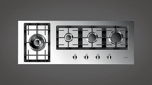 Układ palników w płytach gazowych serii Q-DESIGN zapewnia najmocniejszemu palnikowi położenie asymetryczne, co umożliwia efektywne korzystanie ze wszystkich palników jednocześnie, nawet jeśli na największym palniku znajduje się duży garnek. Aby uruchomić palnik wystarczy obrócić pokrętło we wskazanym kierunku (bez przytrzymywania wciśniętego pokrętła).