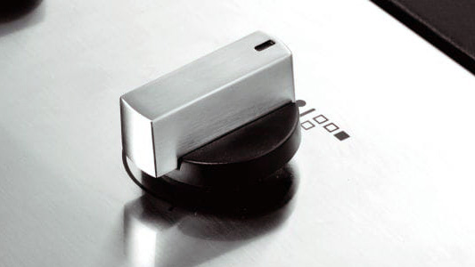 Eleganckie stalowe pokrętła umieszczone w łatwo dostępnym miejscu są idealnej wielkości, aby umożliwić pewny uchwyt podczas sterowania płytą.