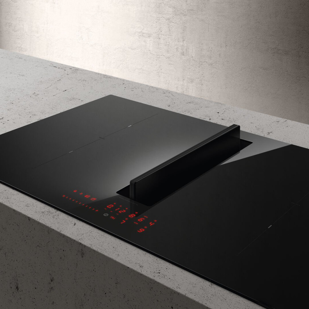 Stylowa, minimalistycznie zaprojektowana powierzchnia płyty z czarnego, hartowanego szkła ze strefą pochłaniania oparów umieszczoną w centralnej części świetnie dopasuje się do nowoczesnych, kompaktowych przestrzeni kuchennych.