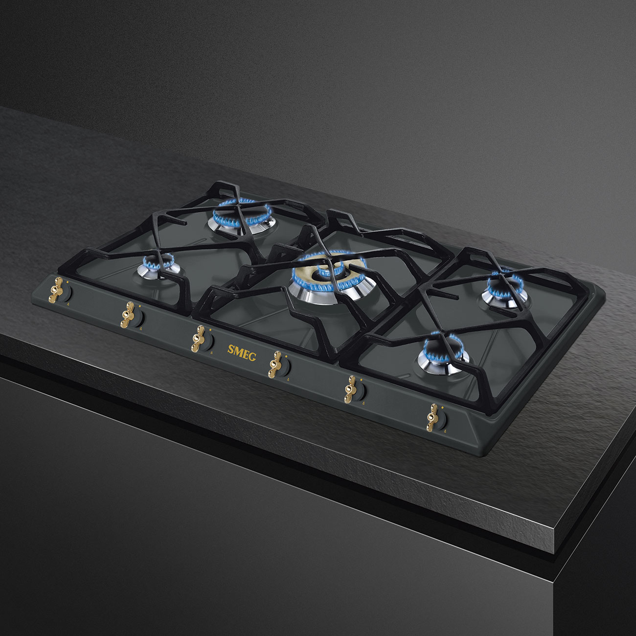 Płyta gazowa Smeg z serii Coloniale w kolorze antracytowym, 5 palników, z 5-letnią gwarancją producenta, 90 cm.