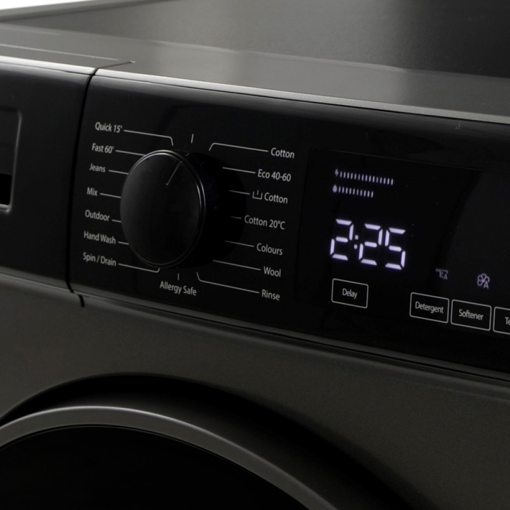 Pralka typu slim w kolorze czarny inox, 15 programów, 7 kg, 1200 obr./min., automatyczne dozowanie, funkcja para, wi-fi.