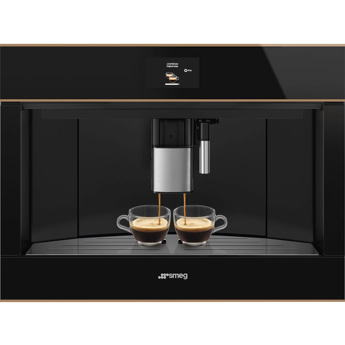 Ekspres do kawy Smeg do zintegrowanej zabudowy z serii Dolce Stil Novo z miedzianym wykończeniem komponentów i 5-letnią gwarancją producenta.