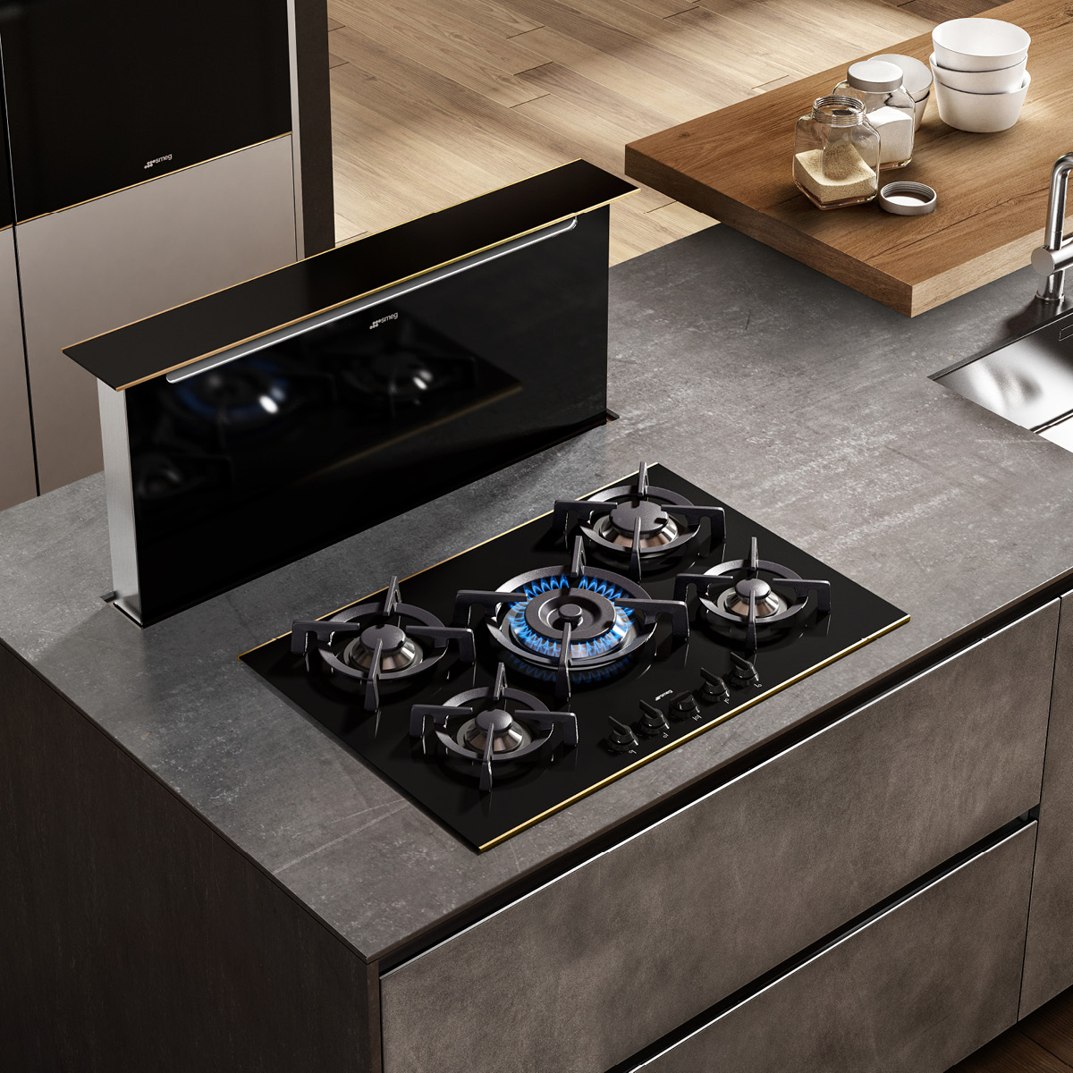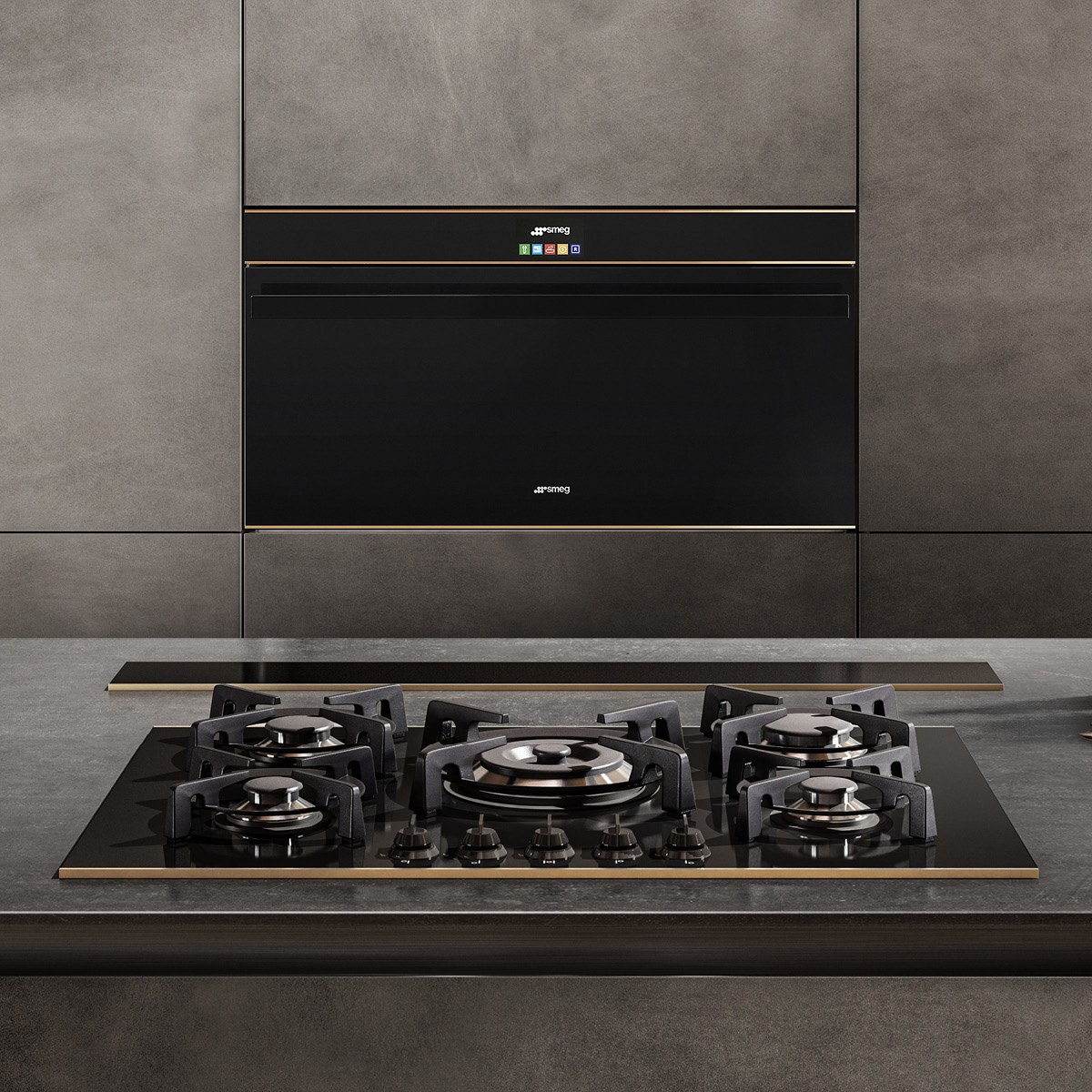 Płyta gazowa Smeg do zintegrowanej zabudowy z serii Dolce Stil Novo z miedzianym wykończeniem komponentów i 5-letnią gwarancją producenta, 75 cm.