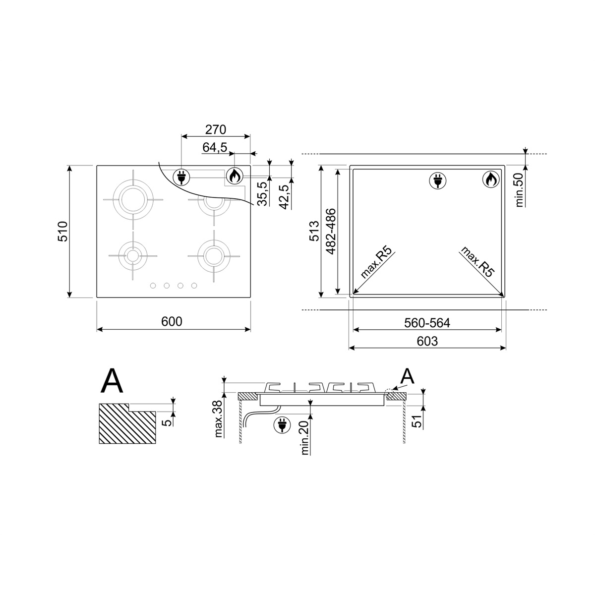 - Grupa produktów: Płyta gazowa do zintegrowanej zabudowy na równi z blatem