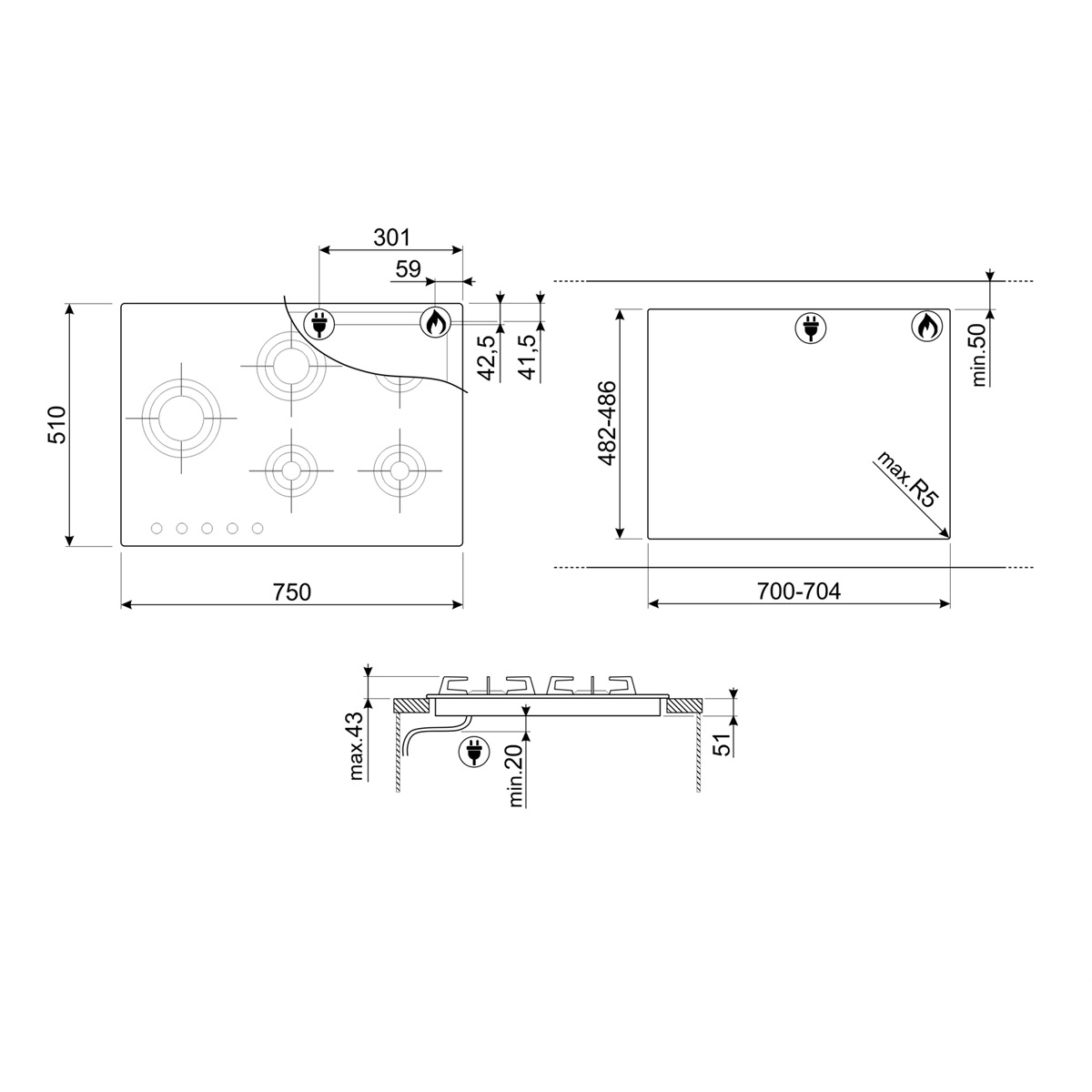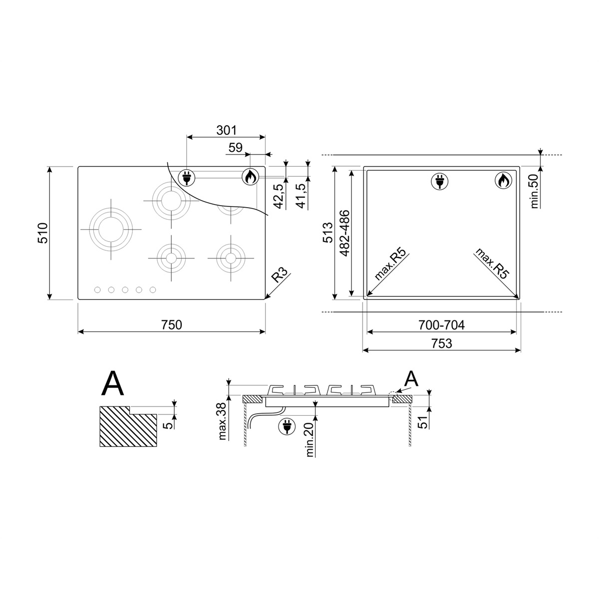 • Grupa produktów: Płyta gazowa do zintegrowanej zabudowy na równi z blatem