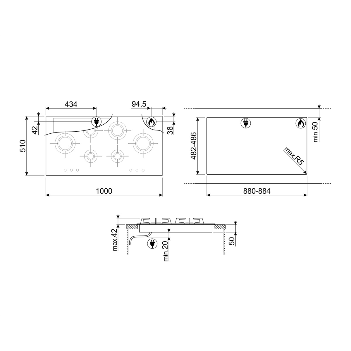 • Grupa produktów: Płyta gazowa do zintegrowanej zabudowy na równi z blatem