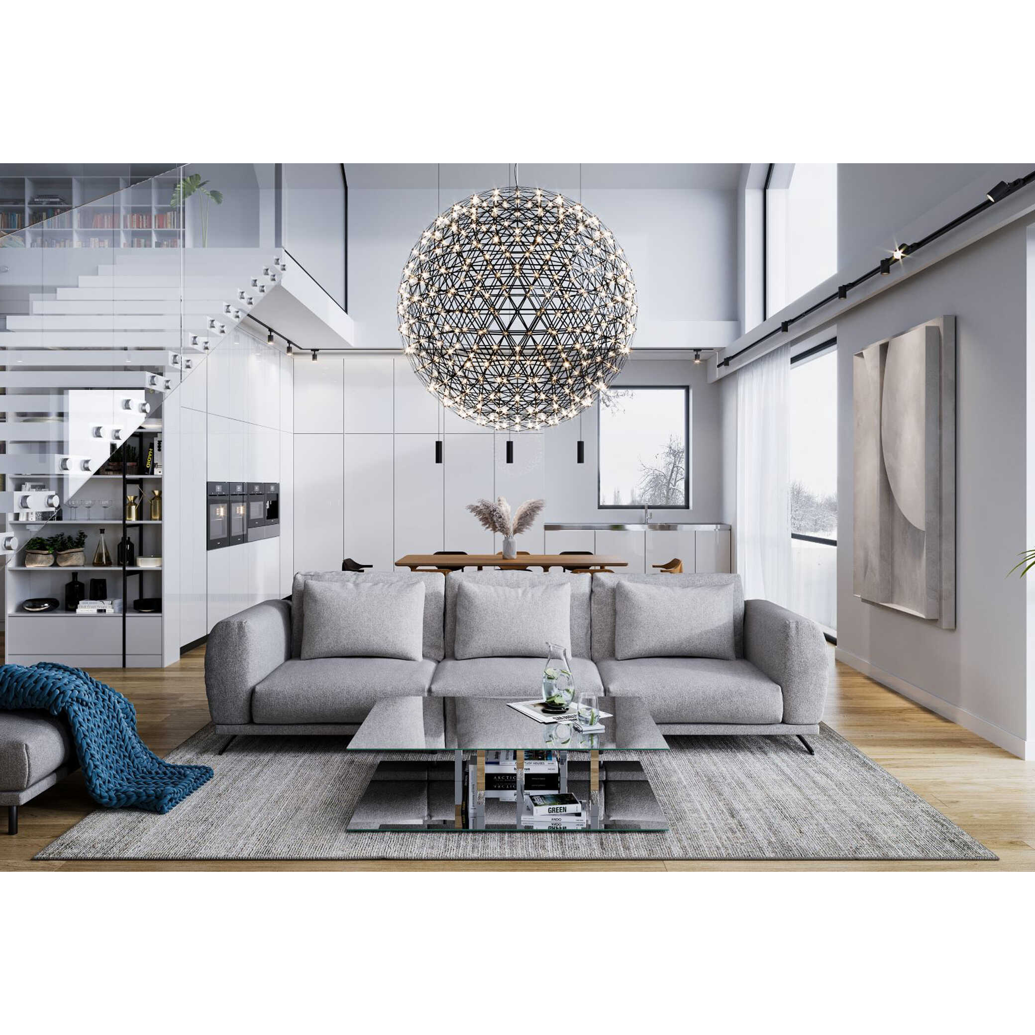 Mebel jest w całości tapicerowany (w tym tył), dzięki czemu można go usytuować na środku salonu.