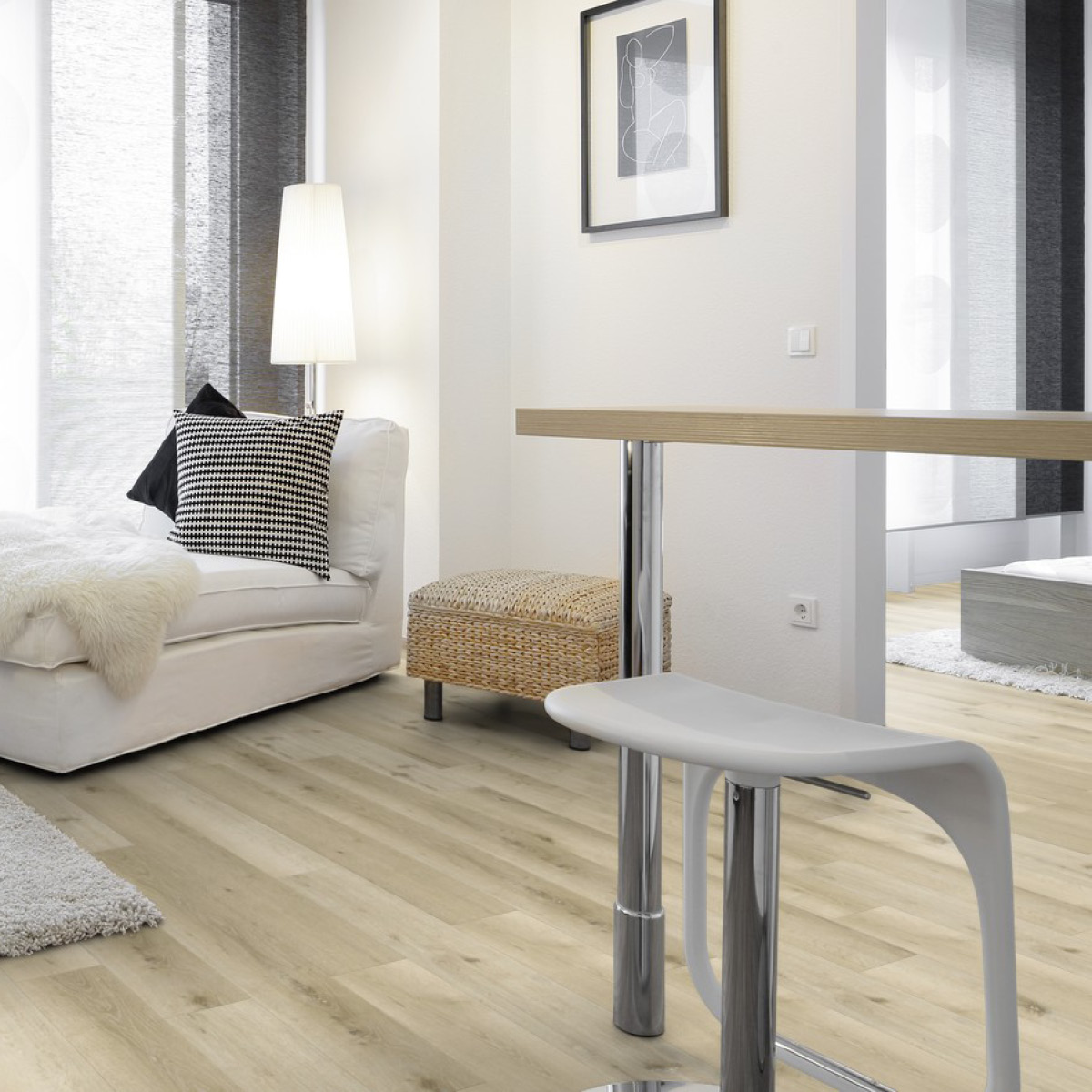 17 designerskich desek i płytek podłogowych SPC – CORE COLLECTION o wyglądzie drewna i kamienia doskonale nadaje się do pomieszczeń mieszkalnych z warstwą użytkową 0,3 mm. Wielkoformatowe deski i płytki nadają pomieszczeniom przyjemną atmosferę i nie ustępują swoim naturalnym modelom pod względem wyglądu i komfortu, a przy tym są łatwe i szybkie w czyszczeniu i konserwacji. Kolekcja SPC – CORE COLLECTION oferuje bezklejową formę montażu, ułatwiając szybkie ułożenie podłogi i jej natychmiastową dostępność.